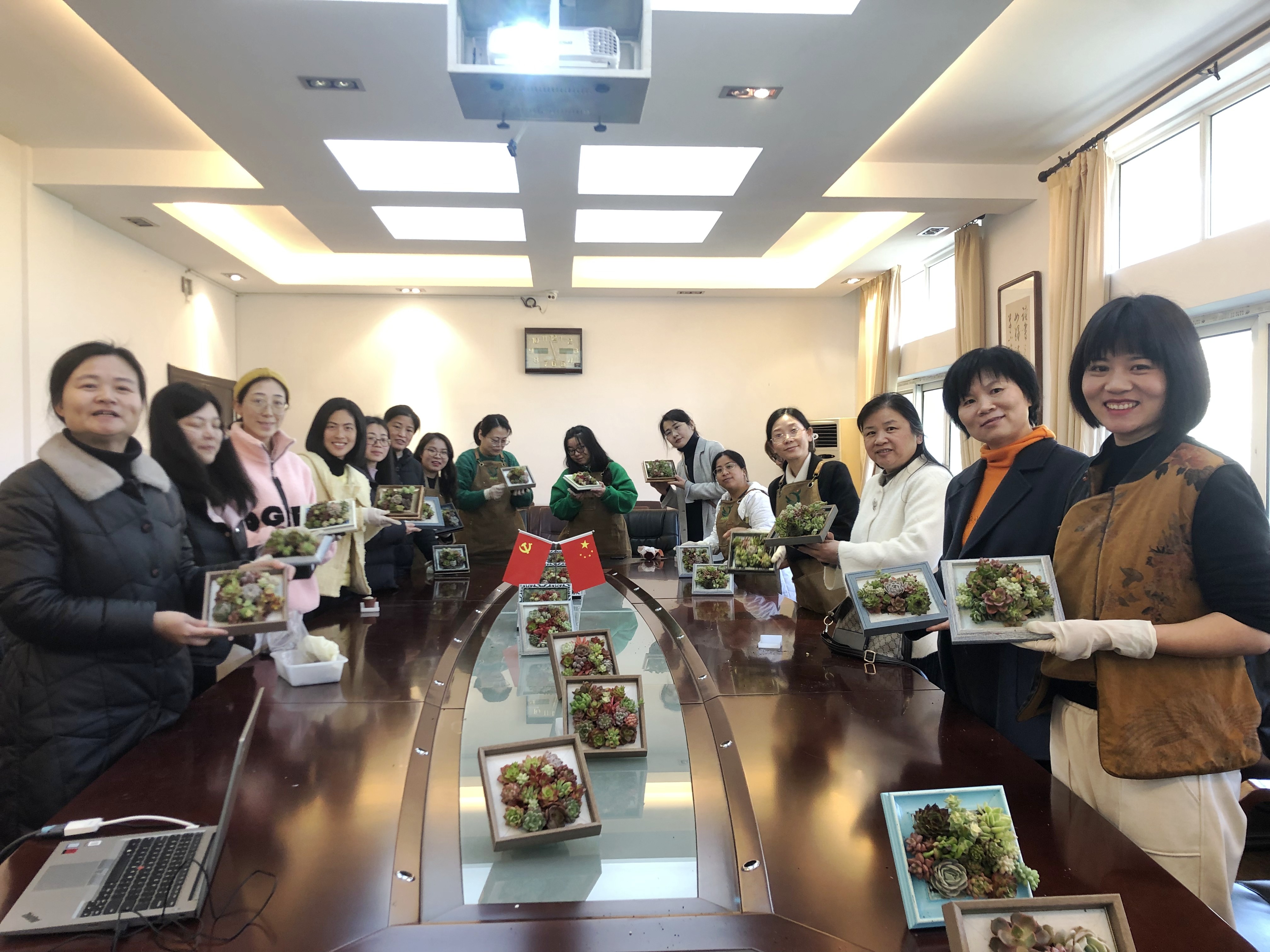 应邀来院授课的花艺师首先介绍了多肉花的种植方法、生活习性等,让女教职工对色彩缤纷的多肉花有了初步了解。随后,花艺师从插花艺术造型、花材修剪、层次搭配、养护方式及实操过程,细致地讲解了多肉花盆艺术造型的基本知识和技巧。