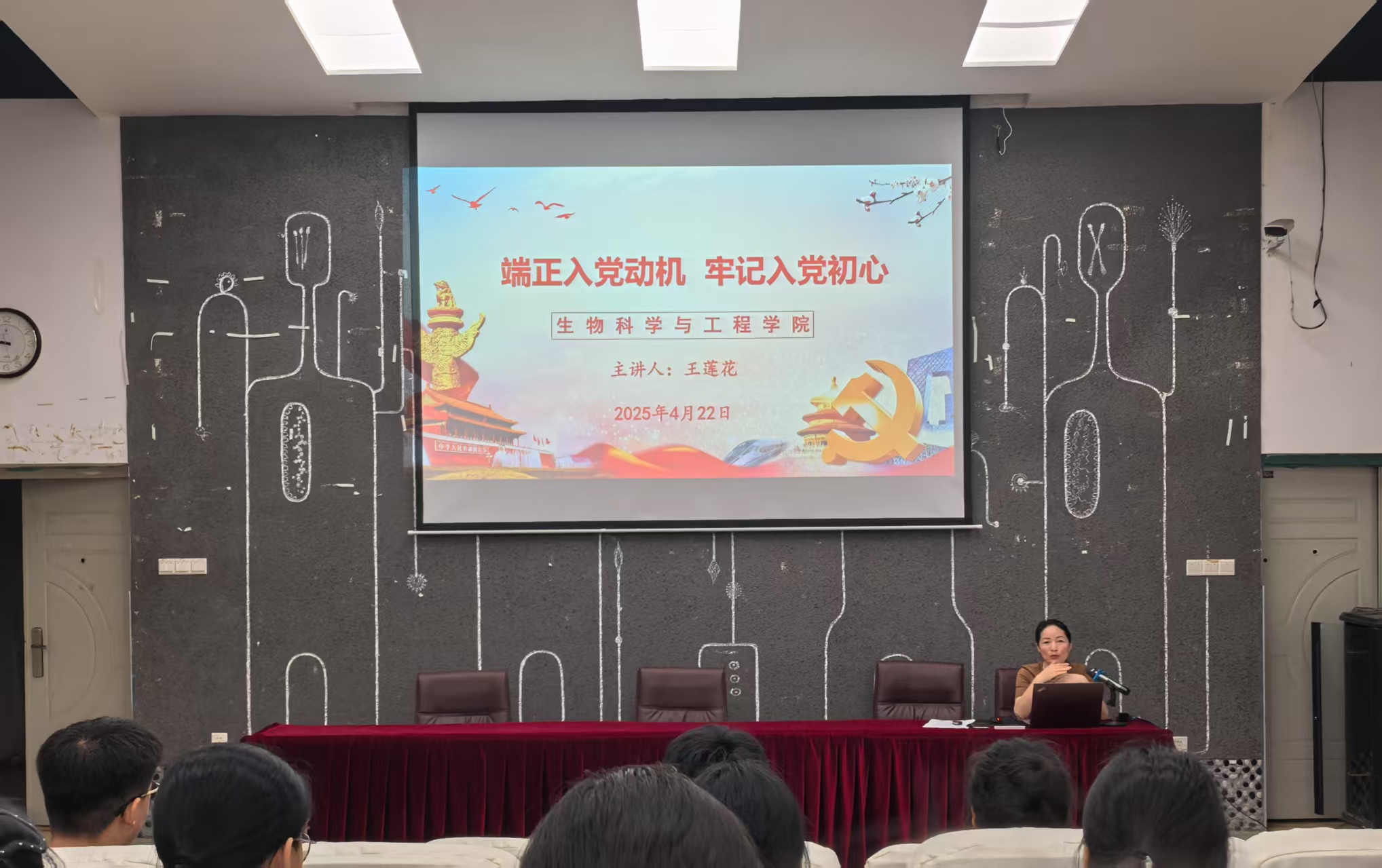 学院党委副书记王莲花以《端正入党动机,牢记入党初心》为题,为入党积极分子讲授专题党课。从中国共产党人的初心、中国共产党的奋斗历程以及牢记使命争做先锋三个方面展开,以丰富的史料、生动的案例,为学员讲了一堂生动的党课。王莲花强调,入党积极分子要坚持线上培训和线下培训相结合,不断提升自己的理论素养,切实端正入党动机,在日常学习生活中积极发挥先锋模范作用,为班级建设添砖加瓦,为学院发展贡献力量。