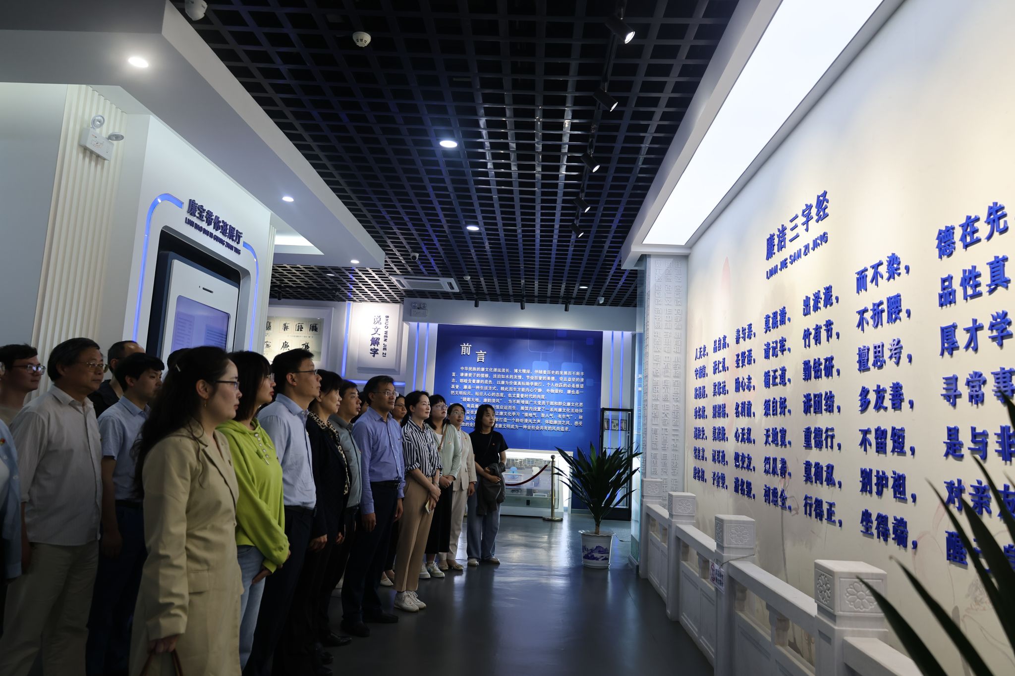 在讲解员的引领下,大家依次参观了趣识廉事、廉影“触”人心、先贤解惑、廉史大讲堂、党纪法规轻松学等多个展区;利用智能语音、VR虚拟现实、互动答题等现代科技手段,开展体验式互动式学习,并齐声诵读了“廉洁三字经”,以生动有趣的方式加深了对廉文化的认识。