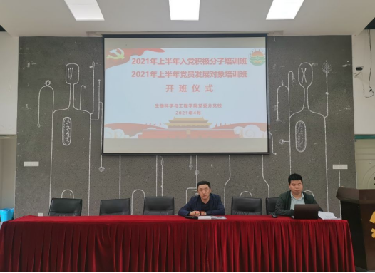 为贯彻落实习近平总书记关于党史学习教育要求部署,加强学院大学生党员及发展对象教育培养,4月20日下午,学院党委分党校在生工院一阶召开2021年第二批发展对象培训班开班仪式及党史学习教育一阶段学习会。院学生党支部书记任青达、学工办帅欢欢以及全体党员发展对象参会。