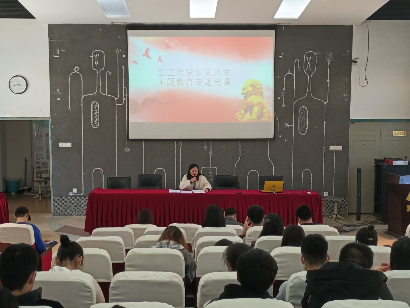 为开展好2021年度党支部组织生活会和民主评议党员,根据学校和学院党委有关要求,3月9日中午,院学生党总支召开党员大会开展集中理论学习,院学生党总支书记范丽琴、学生第二党支部书记罗强、支委成员徐征南、杨威、帅欢欢老师以及学生两个支部全体党员参加会议。