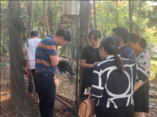 座谈会后,服务团一行实地调研山鸡养殖场,现场查看近期患病山鸡,综合鸡病技术专家意见、鸡腿黄白色疱疹症状、流行病特征和文献报道,初步诊断可能为鸡痘或者马立克氏病,为确诊该病,服务团师生将病鸡样本带回实验室连夜进行解剖、处理和冻存,下一步将订购PCR引物等相关试剂,尽快开展核酸检测和病毒分离鉴定。