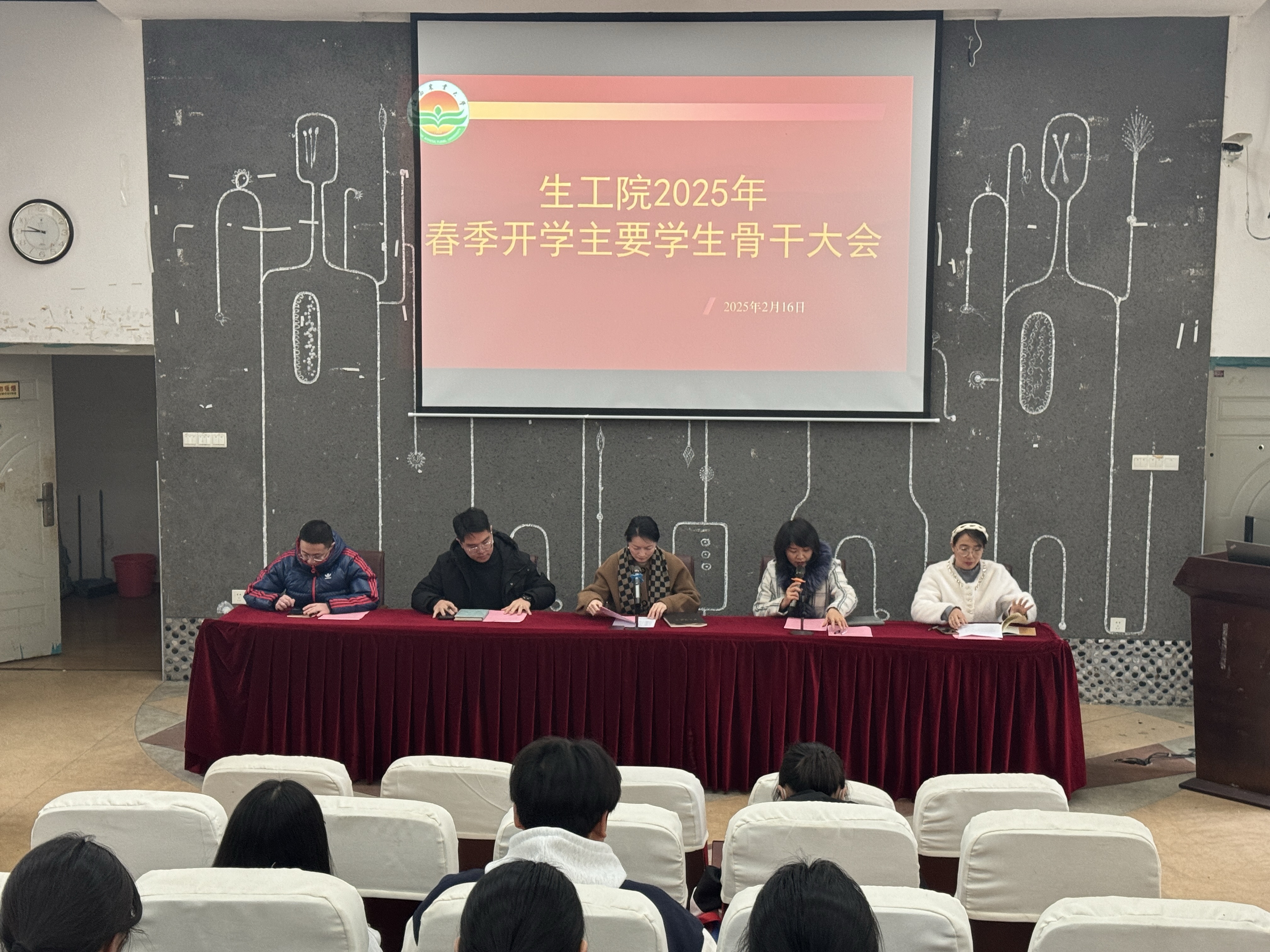 为更好地凝聚学生骨干力量,加强学院学生工作队伍建设,进一步推动学院高质量发展。2月16日,学院在生工院一阶召开了2025年春季开学主要学生骨干大会。学院党委副书记王莲花、辅导员、研究生和本科生主要学生干部出席了本次大会。