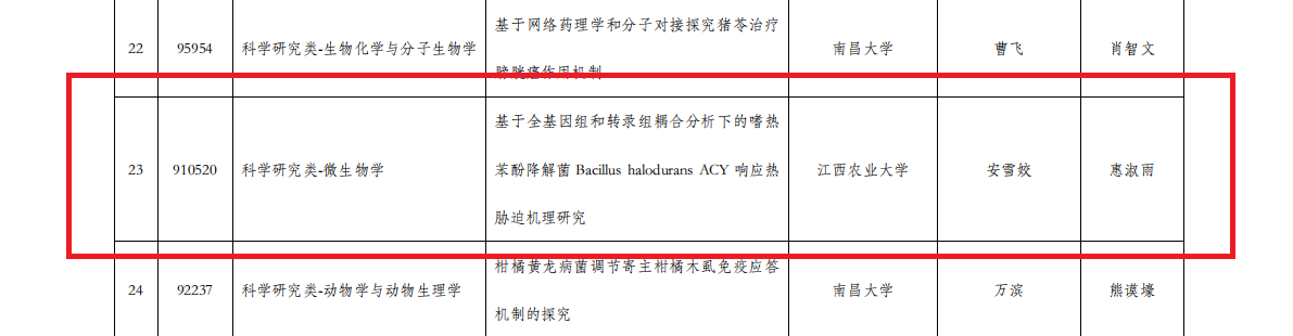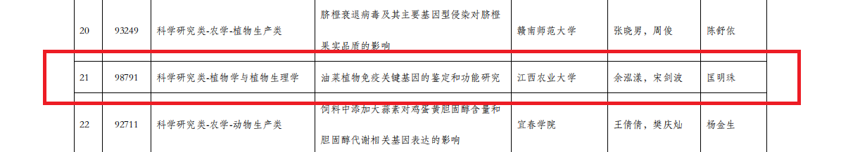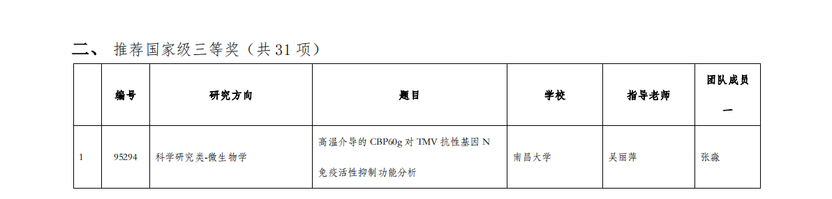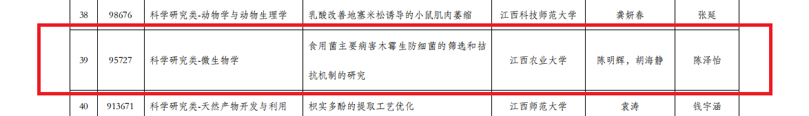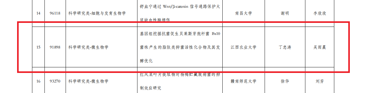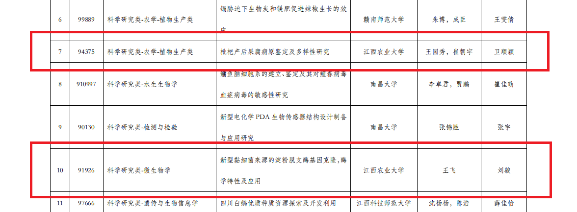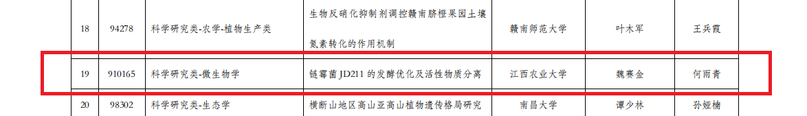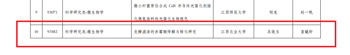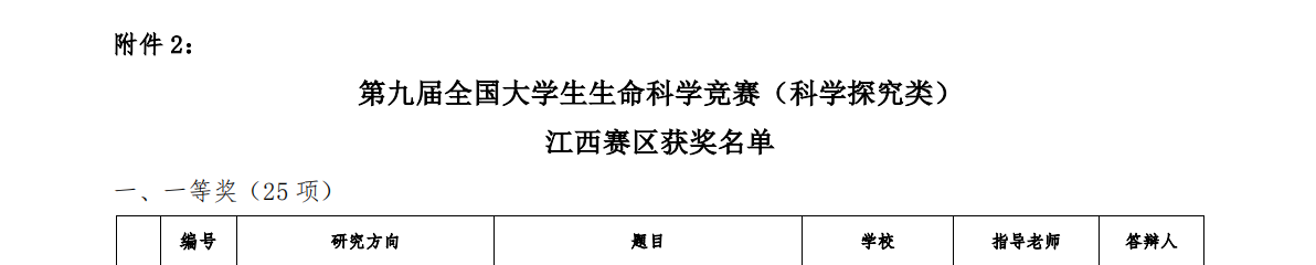 近日,第九届全国大学生生命科学竞赛(科学探究类)江西赛区结果公布。经研究综述和实验设计上传、实验记录及论文上传、网络评审等多个环节,江西省最终257个团队有效完赛。在本次比赛中,我院共17个团队顺利完赛,其中10个项目获奖,获奖率58.8%,本次学院师生荣获的奖项分别为:推荐国家级三等奖1项、一等奖1项、二等奖3项、三等奖5项。