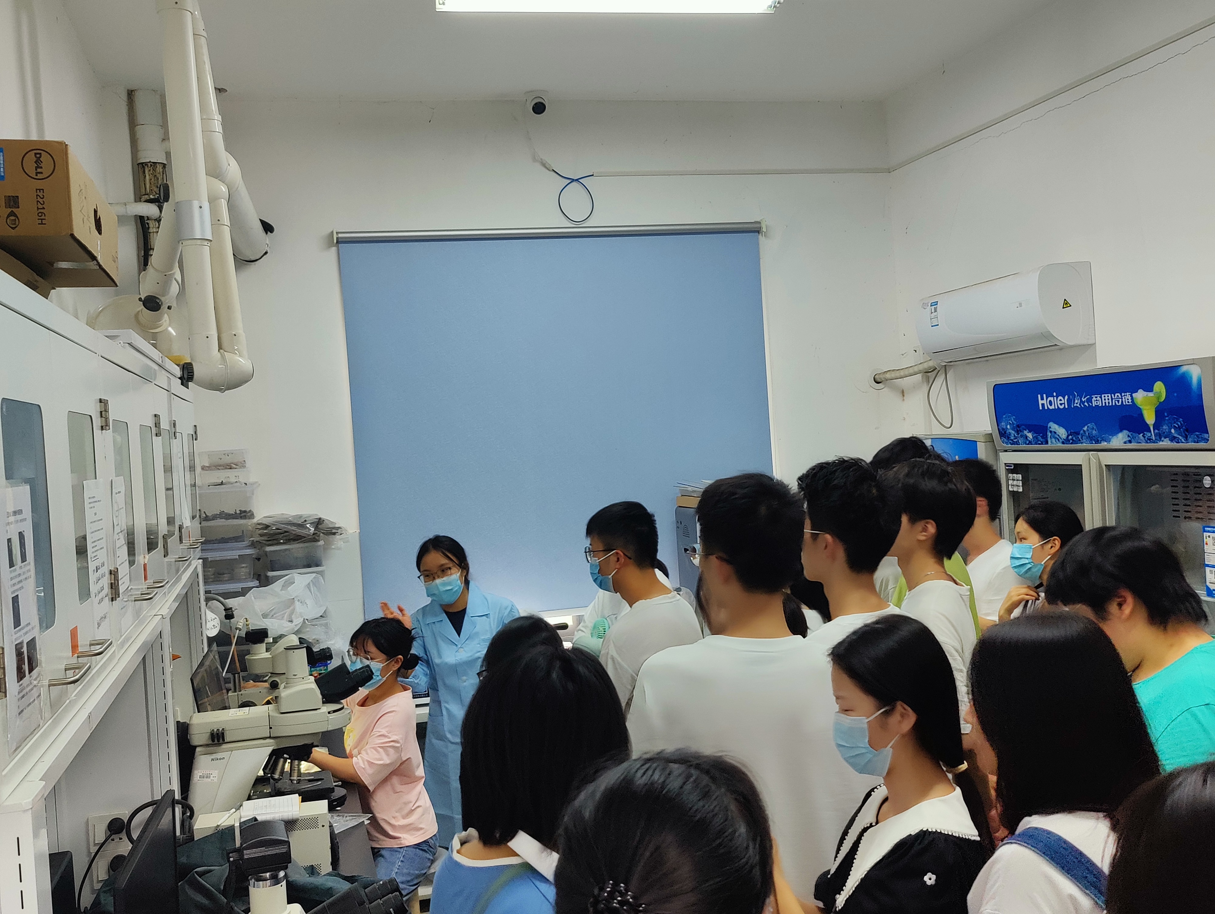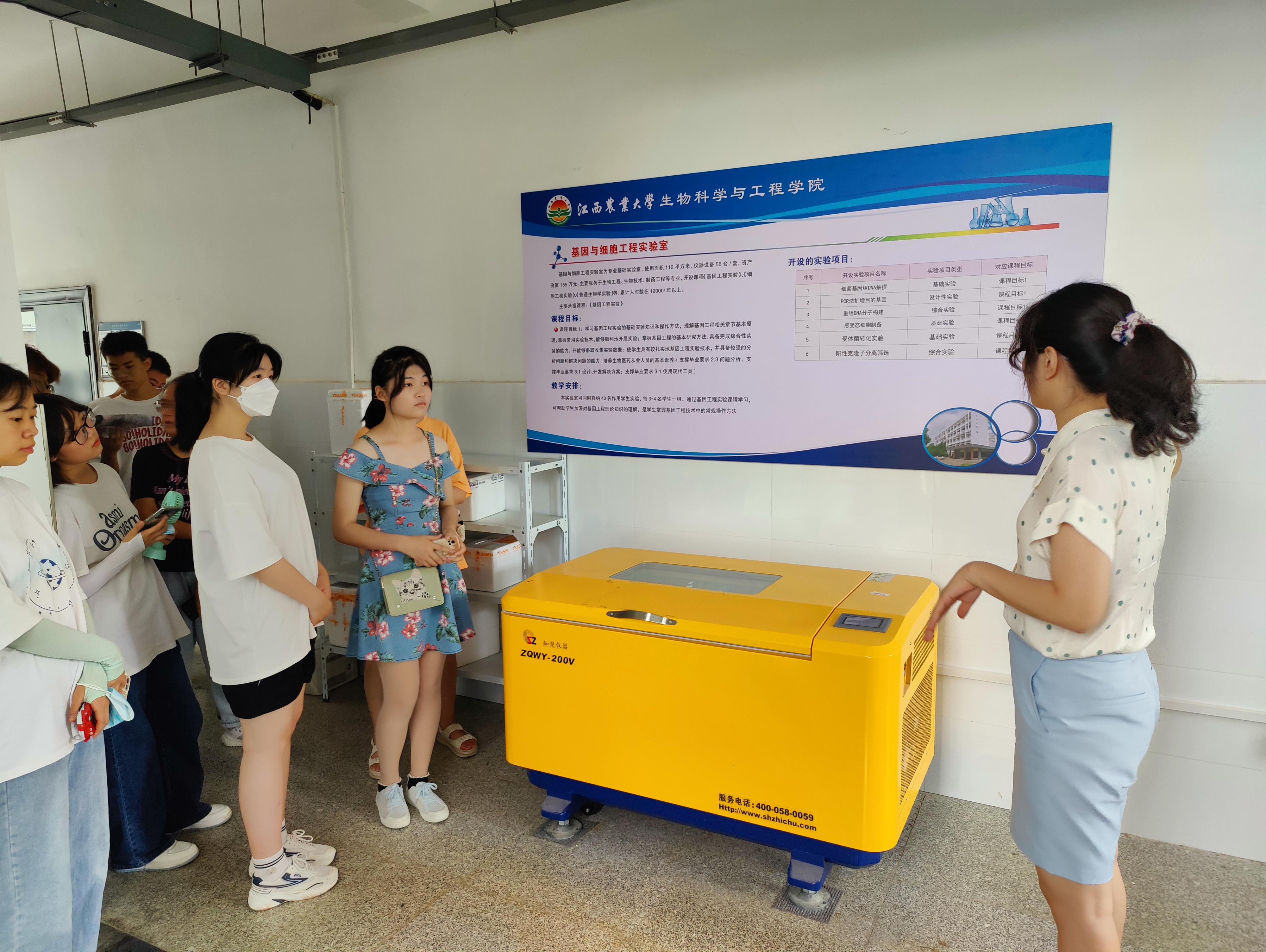 在生物工程楼和学院实训基地,全体2022级新生分批次认真参观学院细胞代谢与发酵工程研究团队、病原微生物研究团队、微生物资源发掘与生物转化研究团队、食药用菌科研团队等实验室,学院丁忠涛、刘建萍、郭昭、涂晓嵘、胡海静等老师对全体同学的参观学习表示欢迎,并进行细心讲解,详细介绍科研团队基本情况,并就团队人员构成、主要研究方向、实验室仪器设备数量及所取得研究成果进行详细说明,以此不断激发同学们的学习探知欲望。全体同学认真参观聆听讲解,积极和各科研团队及实验室师生进行沟通交流。此外,全体同学也参观了学院各机构科室,院学生党总支书记范丽琴等老师给大家详细介绍学院基本情况及各机构科室的工作职责。