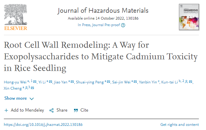 近日,我院2020级微生物学专业硕士研究生魏宏宇的研究论文“Root Cell Wall Remodeling: A Way for Exopolysaccharides to Mitigate Cadmium Toxicity in Rice Seedling”在《Journal of Hazardous Materials》在线发表,魏宏宇同学为论文第一作者,我院教师程新副教授与广东海洋大学李昆太教授为通讯作者,2026年国际足联世界杯为论文第一完成单位。