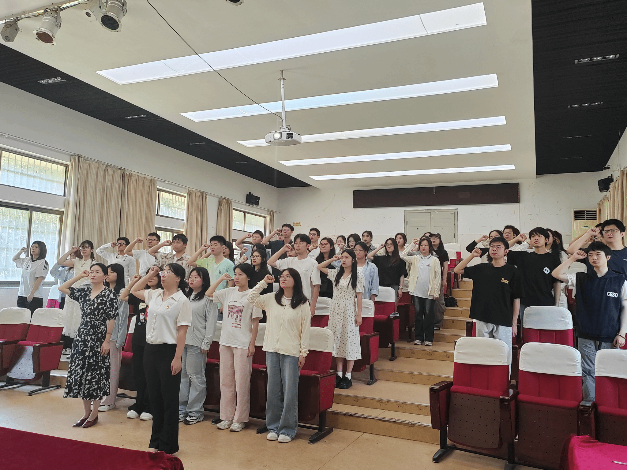 党课结束后,在庄严的氛围中,全体毕业生党员高举右拳,重温了入党誓词。一句句铿锵有力的誓言,不仅是对入党初心的回溯,更是对未来征程的郑重承诺。