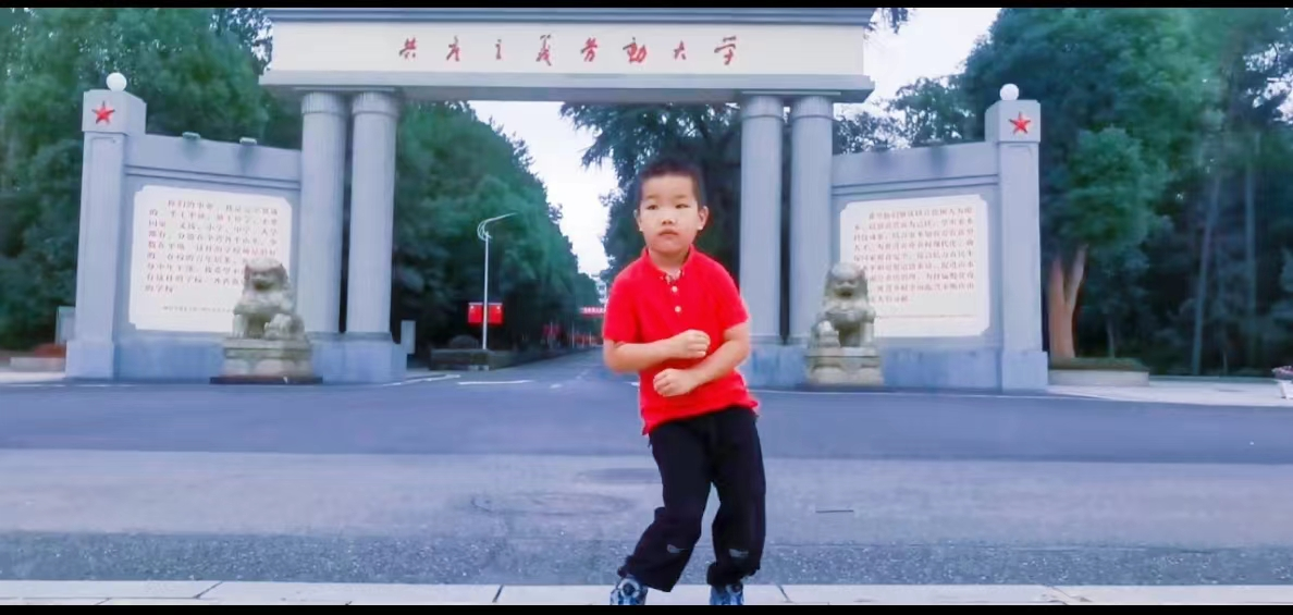 生工081班唐清源校友之“生工二代”在老校门前开心起舞