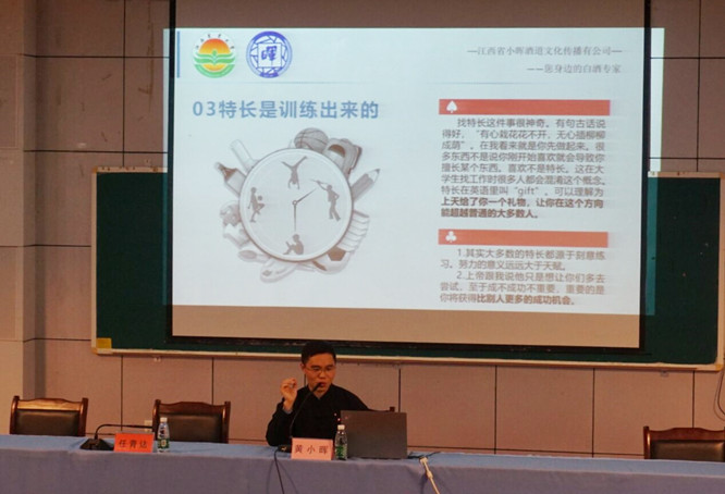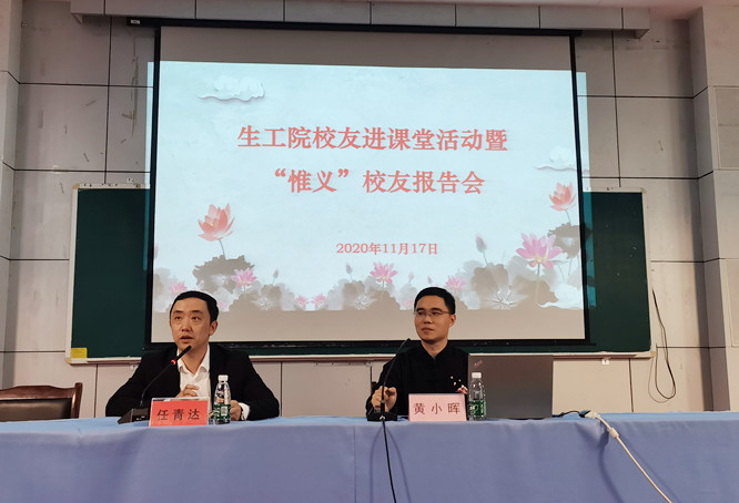 11月17日下午,我院在2教307报告厅举行校友进课堂活动,邀请到2005级优秀校友黄小晖学长为全体新生作报告,报告主题为“2020我的大学和品酒师”。