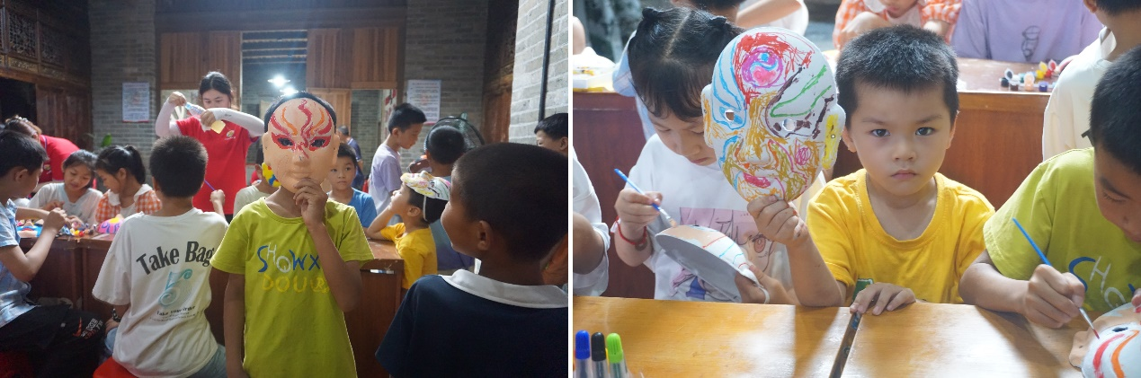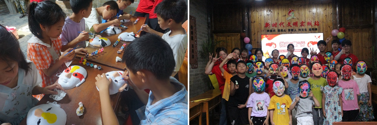 为弘扬中华民族优秀传统文化,让乡村孩子们近距离体验非物质文化遗产的魅力。队员们向小朋友们介绍了国粹京剧的起源和发展,了解京剧的重要地位以及行当分类,通过学习,孩子们了解了脸谱的不同的含义:红色脸谱象征忠义;黑色脸谱代表刚烈;白色脸谱表示奸诈多疑……通过学习孩子们对戏剧传统文化充满兴趣,并用笔墨勾勒,色彩渲染,用心绘制了一张张颜色各异的脸谱。这是一次爱国主义教育,增强了孩子们的文化自信和素养,感受传统文化的精髓,让孩子们成为传统文化的传播者,未来做新时代的好少年。