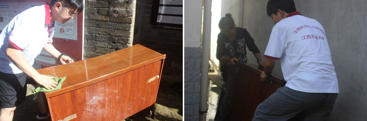 “人字山墙的青砖绿瓦屋,飞檐和亮堂的铺着大麻石的天井”这是独居老人王大爷的家,王大爷行动不便在这里已经居住了几十年了。队员们了解了老人的身体状况和生活情况后主动来到王大爷家,与老人话家常,扫地、抹桌、打扫庭院、清运垃圾。“莫道桑榆晚,人间重晚晴”队员们践行“奉献、友爱、互助、进步”的志愿服务精神,传承中华民族尊老、爱老、敬老的传统美德,将暖心服务送到了老人身边,营造了孝老爱亲的温馨氛围。