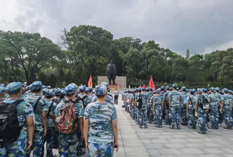 13:50,我院新生身着迷彩、装备充足、整装待发。在教官的带领下,全体师生从北区综合田径场集结出发前往方志敏烈士陵园。单程徒步两公里,拉练队伍一路军歌嘹亮、口号昂扬、步伐矫健,即使大汗淋漓也不轻言放弃。