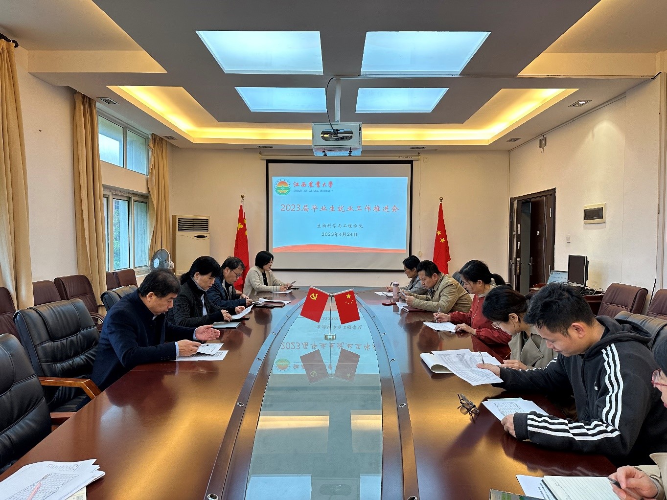 为深入学习贯彻党的二十大精神,落实党中央、国务院和省委、省政府“稳就业”“保就业”决策部署,统筹做好我院2023届毕业生就业服务工作,4月24日上午,学院在212会议室召开2023届毕业生就业工作推进会。院党委书记吴晓玉、副院长张庆华、郭柳华出席会议,院学生党总支书记范丽琴主持会议,各教研室负责人、毕业班班主任,全体辅导员参加会议。
