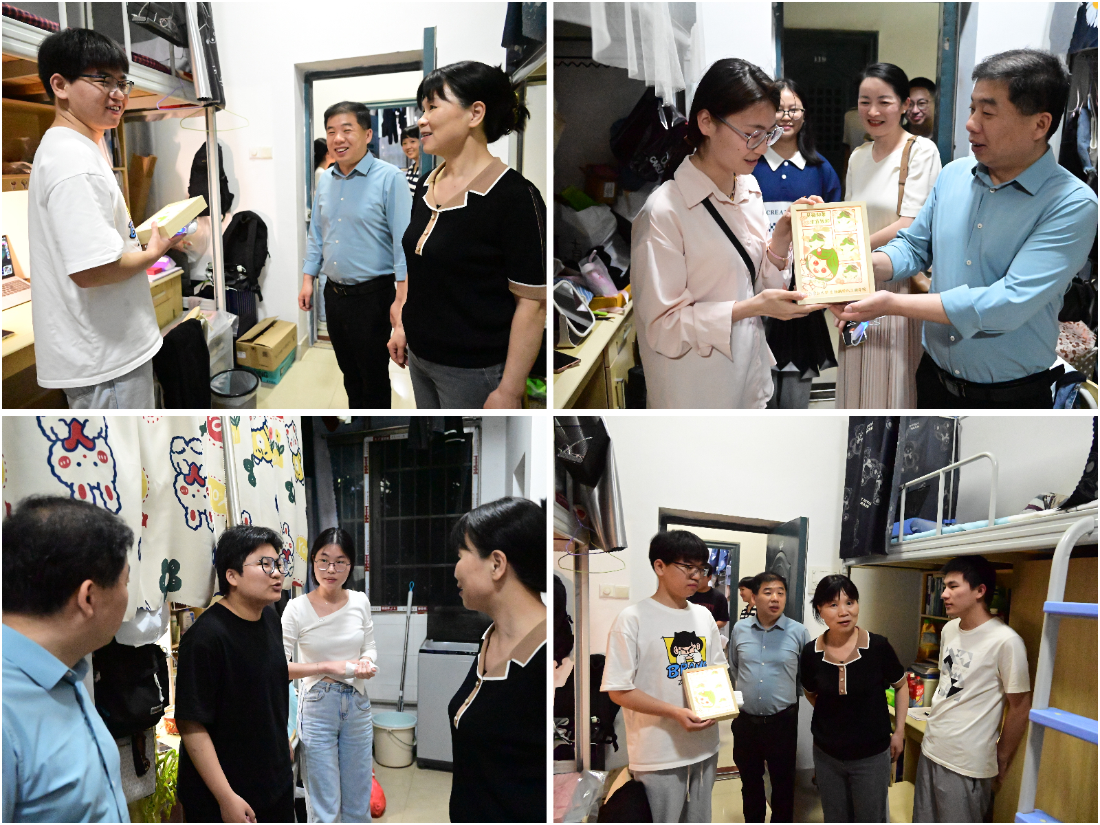为进一步做好我院2024届毕业生离校教育和就业工作,确保毕业生安全文明离校,促进毕业生高质量就业,2024年5月16日晚,院党委书记吴晓玉、副院长张庆华、院党委副书记王莲花带领全体辅导员深入毕业班宿舍走访慰问。