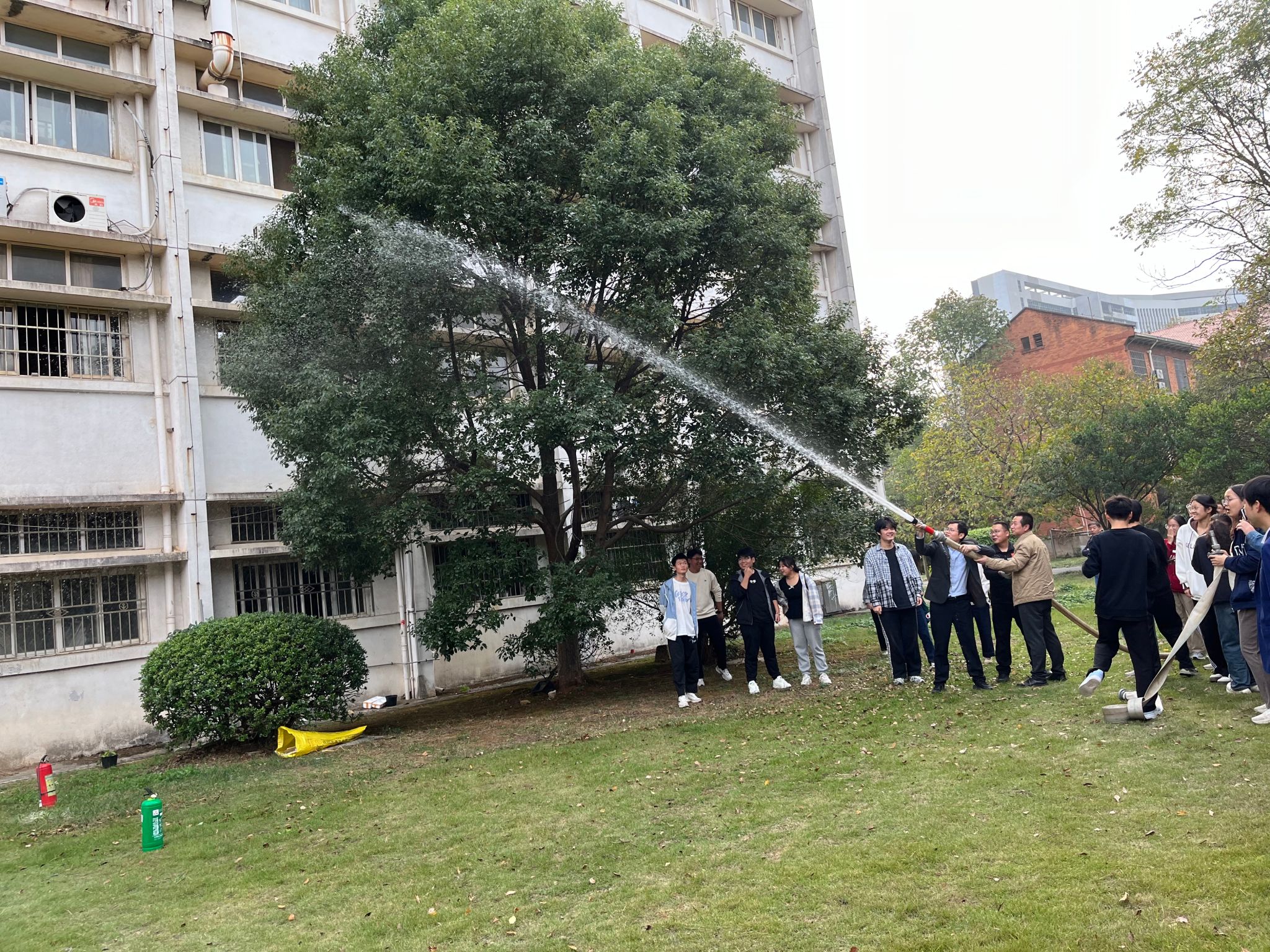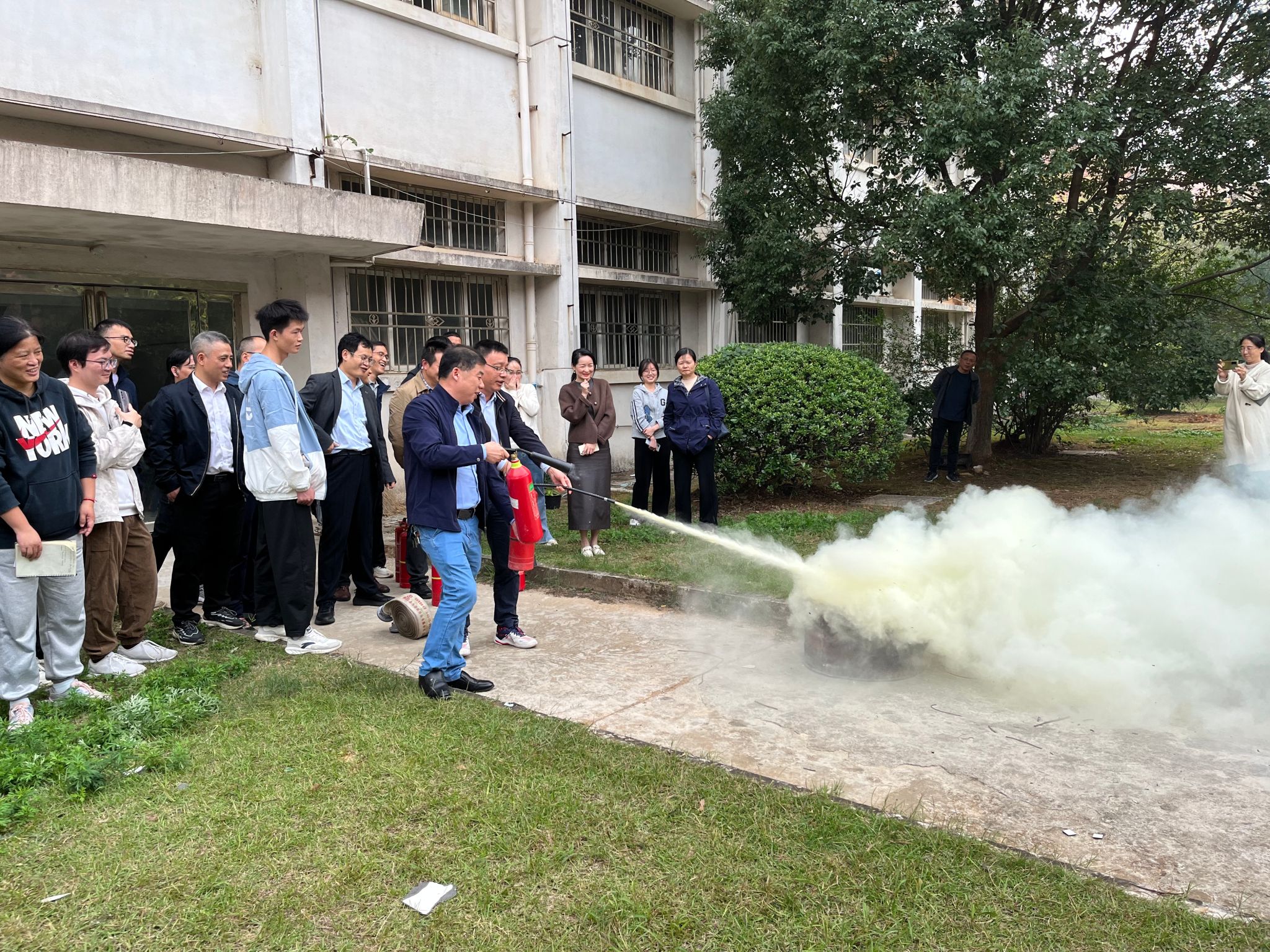 逃生演练结束后,徐杰对灭火器的操作步骤、消防水带的安装使用等进行了现场演示。师生们纷纷上前,现场学习灭火器和消防水带的使用方法,掌握了灭火的基本技能。