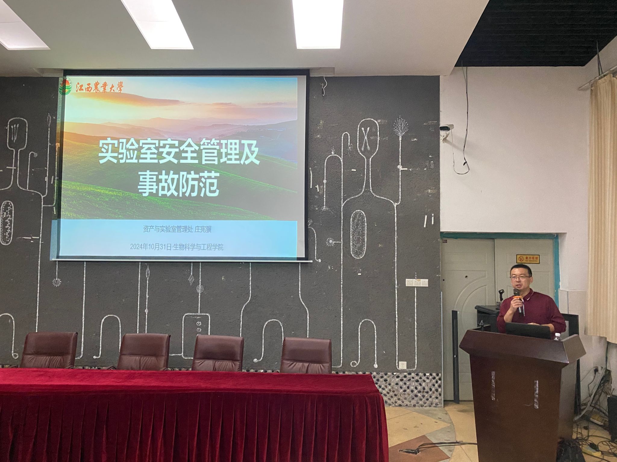 为了提高学院学生实验室安全基本技能和责任意识,10月31日,学院邀请资产与实验室管理处庄宪骥科长作《实验室安全管理及事故防范》知识讲座。学院党委委员孔令保教授、学工办主任陈小红老师、学院安全员黄珍老师、2024级研究生和本科生学生干部共100余人参加,报告会由孔令保主持。