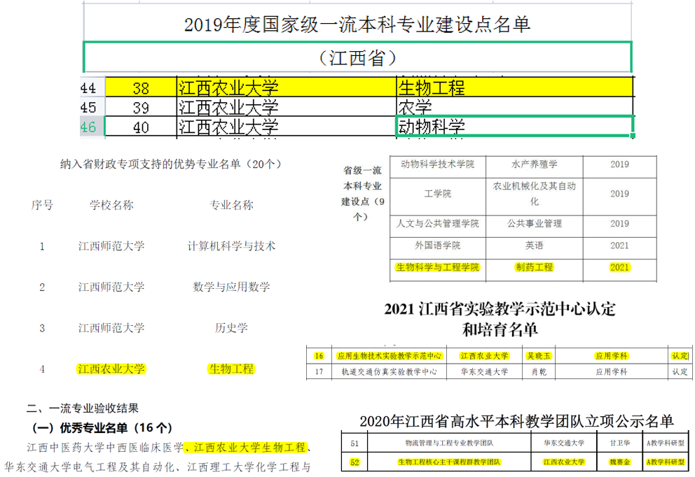 五年来,学院积极响应新工科、新理科建设理念,致力于培养生物农业、生物医药等行业的创新型人才。生物工程专业2019年入选国家一流专业建设点,2020年省一流专业验收获评“优秀”,2021年被评为江西省四星级专业,排名全省第二,通过国家教育工程认证及年度持续改进工作。制药工程专业是2019- 2021年度校级重点建设专业,在2021年被评为江西省一流特色专业。生物技术专业为江西省特色专业、2019-2021年度校级重点建设专业、在省内首设食用菌方向。