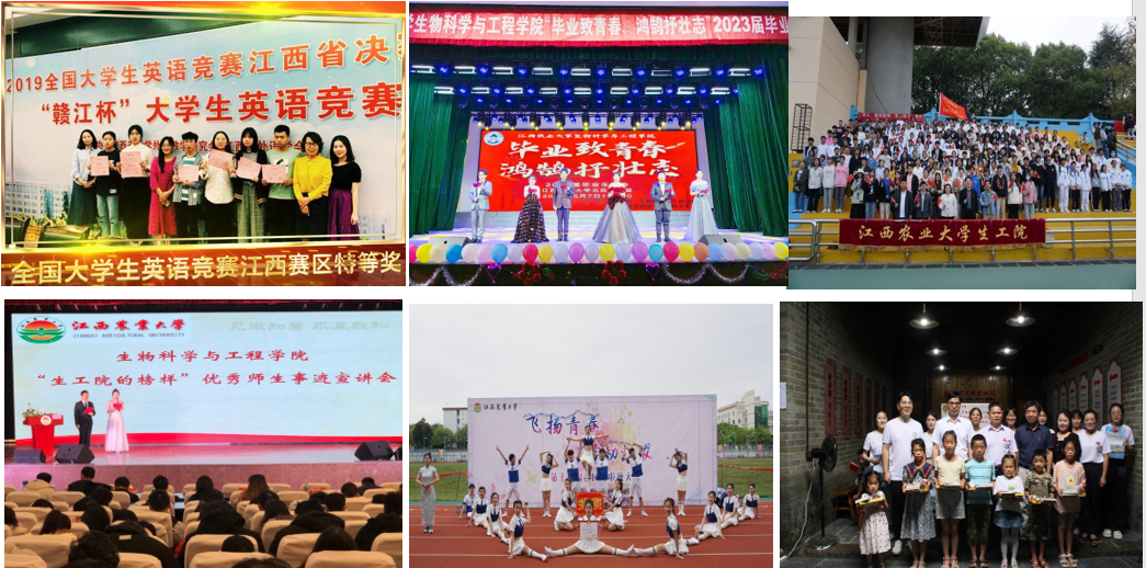 五年来,学院以理想信念教育为核心,以培育和践行社会主义核心价值观为主线,围绕着大学生“健康成长、立志成才”的工作目标,积极构建学生锻炼有平台、学习有风气、安全有保障、管理有效率的工作新局面。学院通过多方式、多平台不断强化学生思想政治教育、理想信念教育、安全健康教育、学业及就业指导服务等,依托党课团课、红色走读、学生骨干培训、大学生创新创业竞赛、校园文体活动、暑期“三下乡”志愿服务、寒假“返家乡”志愿服务等系列活动,引导大学生树立正确的世界观、人生观和价值观。五年来,考研升学率稳步提升,2023年达到46.6%,创历年新高,2023年就业率位居全校首位;本科生在国内外等学术期刊上发表论文近20篇;在“互联网+”“挑战杯”等全国大学生创新创业大赛中获得国家铜奖、省级金奖、银奖等奖项累计30余项;在全国大学生生命科学竞赛等学科竞赛方面荣获国家二等奖;学院获“趁年轻 去基层”全国大学生“千校千项”实践最美团队、多次获得江西省志愿服务先进集体及省“三下乡”社会实践先进服务营队等荣誉;指导学生获得全国“情系三农”微电影大赛冠军、全国返乡创业10强,全国大学生英语竞赛江西赛区特等奖等。2023年 “微光童行”社会实践志愿服务队荣获全国大中专学生志愿者暑期文化科技卫生“三下乡”社会实践活动优秀团队,为历史突破。学院连续多年在校运会中取得好成绩,学生张宁在2023年中国高等农业院校华东区第十六届田径运动会获女子甲组4*400米接力赛第6名。