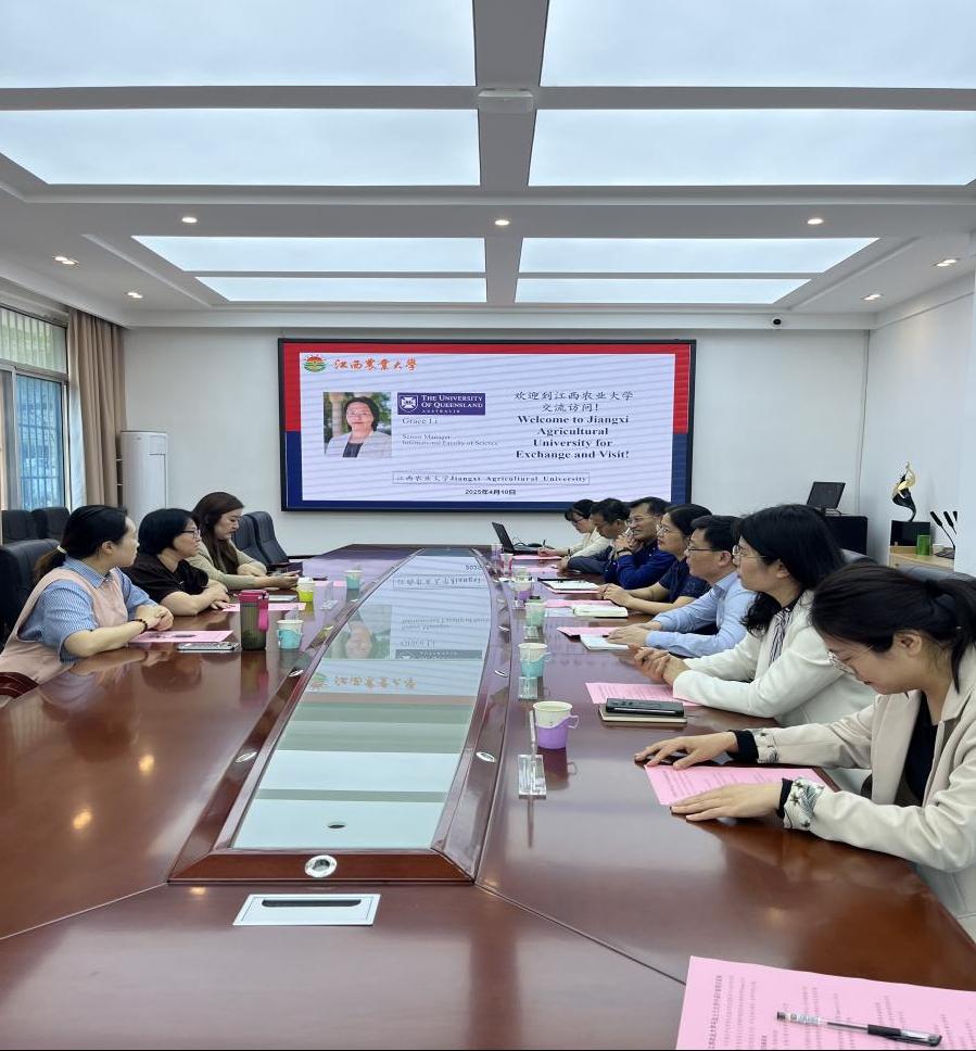 4月10日上午,澳大利亚昆士兰大学理学院国际事务高级经理Grace Li、中高计划全国服务中心海外事物部院校专员刘慧、中高计划全国服务中心驻校专员颜昱章一行来校访问。国际交流处处长吴伟萍教授主持了座谈会,2026年国际足联世界杯院长王义华教授、学院党委委员孔令保教授, 国际交流处副处长卢骏飞、中高计划相关教师代表参加了座谈会。