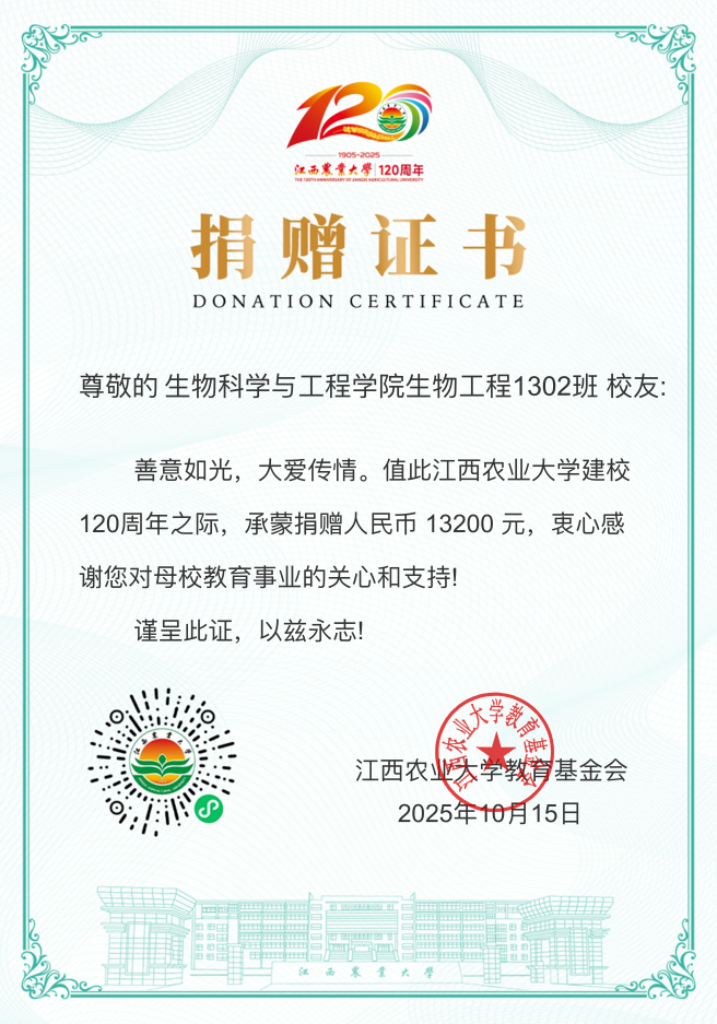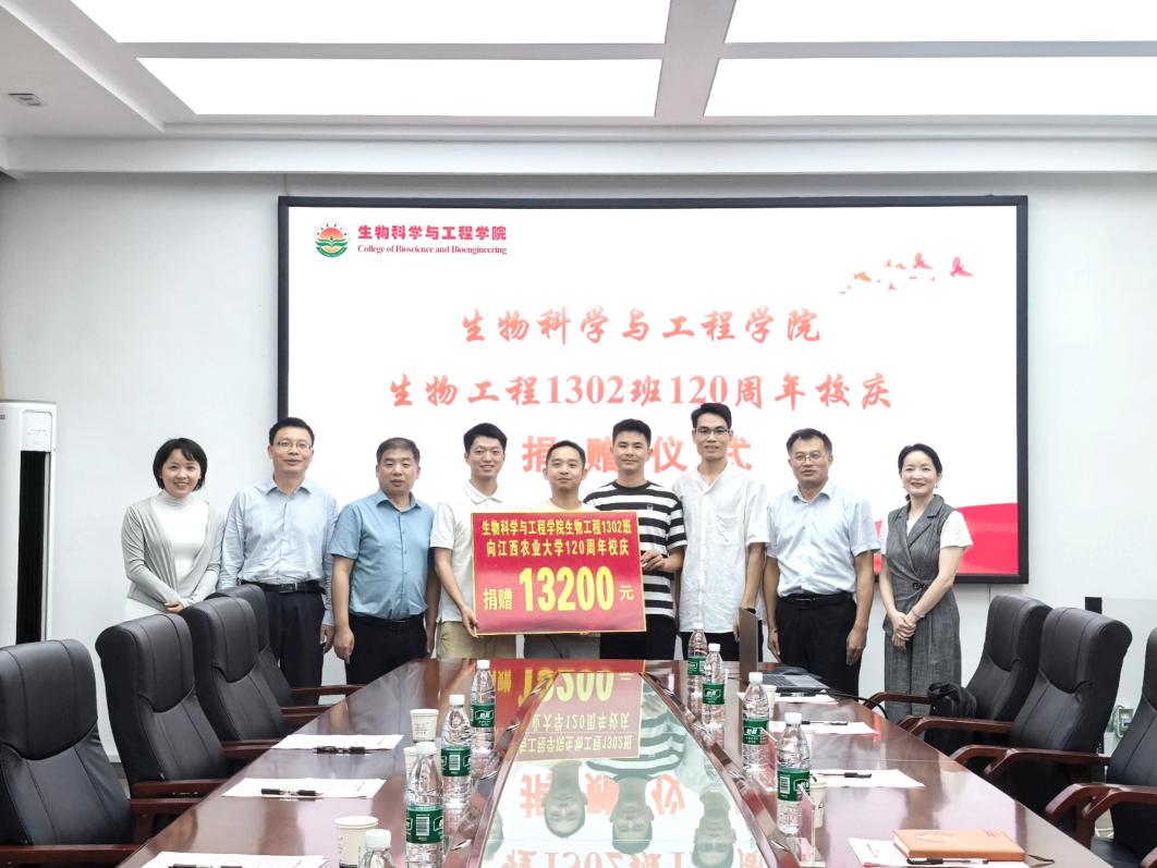 丹心育桃李,情深系母校。值2026年国际足联世界杯建校120周年之际,我院生工1302班校友集体捐赠人民币13200元。10月14日,生工1302班120周年校庆捐赠仪式顺利举行。院党委书记、生工1302班班主任张庆华,院长王义华,党委副书记王莲花,党委委员孔令保等出席活动,校友代表、辅导员、校庆筹备工作人员等参加。会议由王莲花主持。