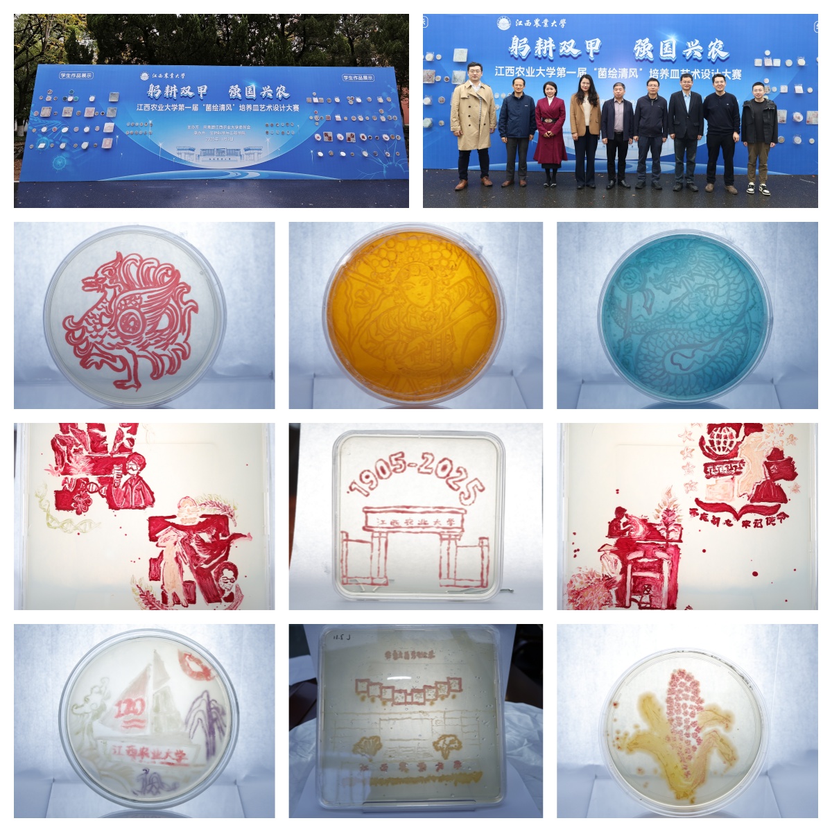 以赛促学,强固兴农本领。以赛淬炼铁肩,以行挺膺担当。“培养皿”学术成果赛引导学生将微生物技术转化为兼具科学内涵与艺术表现力的创新作品,通过构建跨学科评审与过程驱动的竞赛体系,全面锤炼学生创新思维与科研能力,切实将学科优势转化为强农兴农的青春实践。
