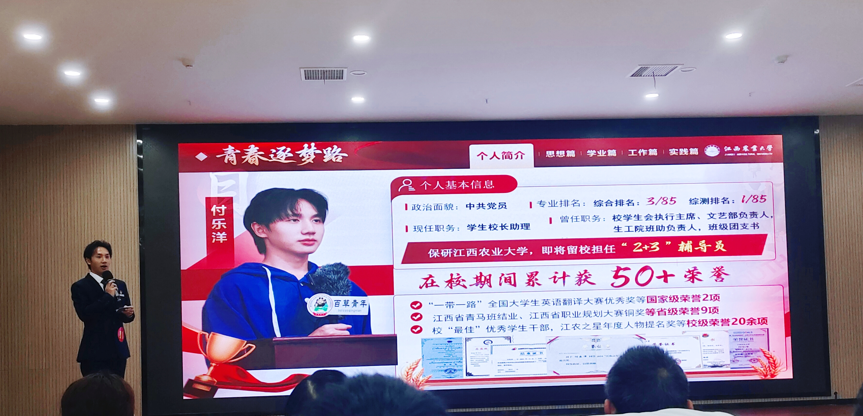 据悉,“江农之星”年度人物评选是学校深入挖掘先进典型,集中展现我校学子优秀风貌,发挥榜样示范引领作用,激励学生奋发向上的校园评选活动。本次评选历经学院推荐、专家评审、公众投票、现场展示四个环节,经过评委初评共20位同学入围全校答辩,最终产生“‘江农之星’年度人物”10名,“‘江农之星’年度人物提名奖”10名。