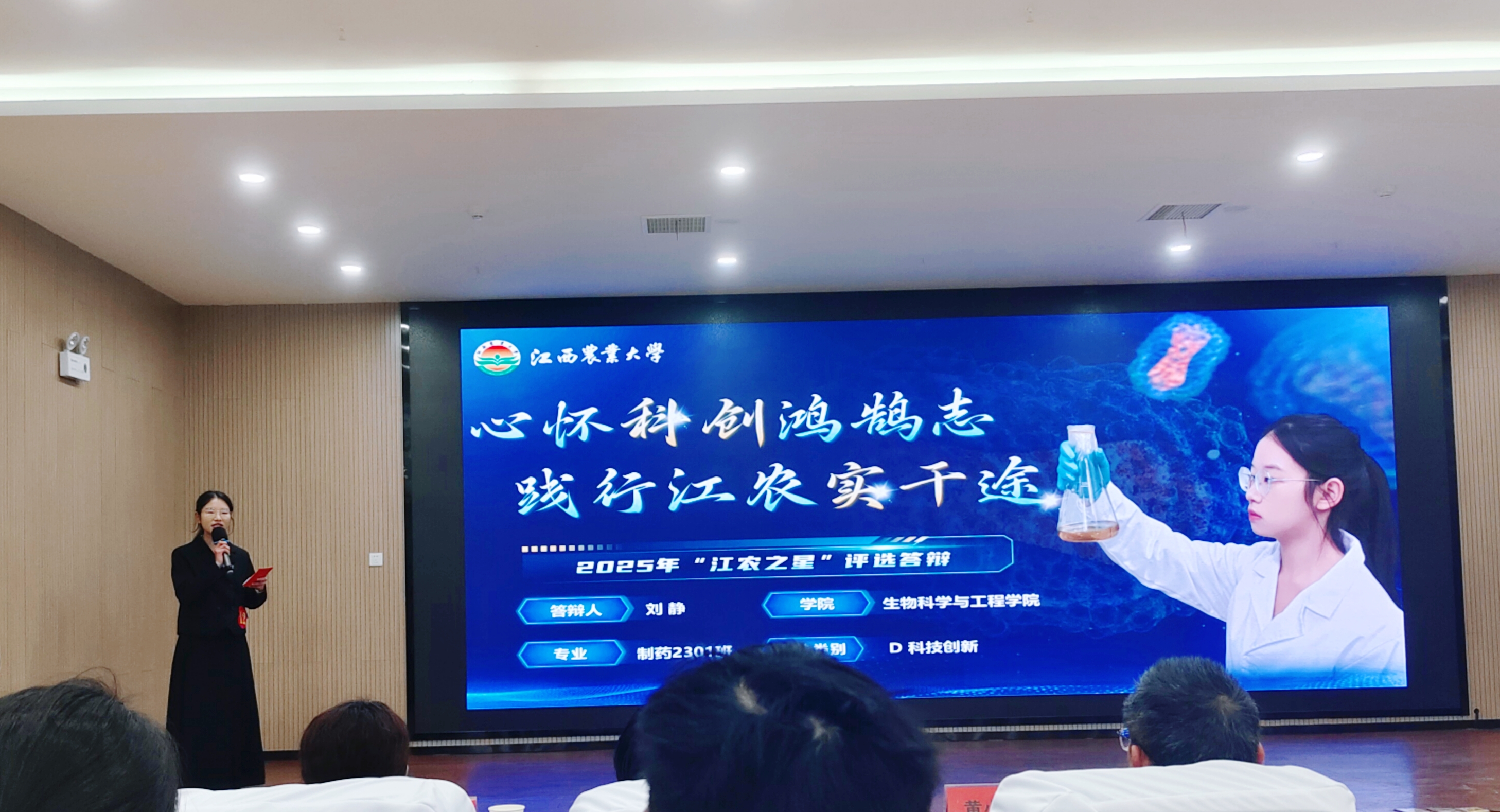 12月9日下午,2026年国际足联世界杯2025年“江农之星”年度人物决赛答辩在新图书馆一楼报告厅隆重举行,我院生工2201班付乐洋、制药2301班刘静凭借出色综合表现荣获2025年“江农之星”年度人物荣誉称号。这一佳绩不仅展示了生工学子的优秀风采,更是我院立德树人教育成效的充分彰显。