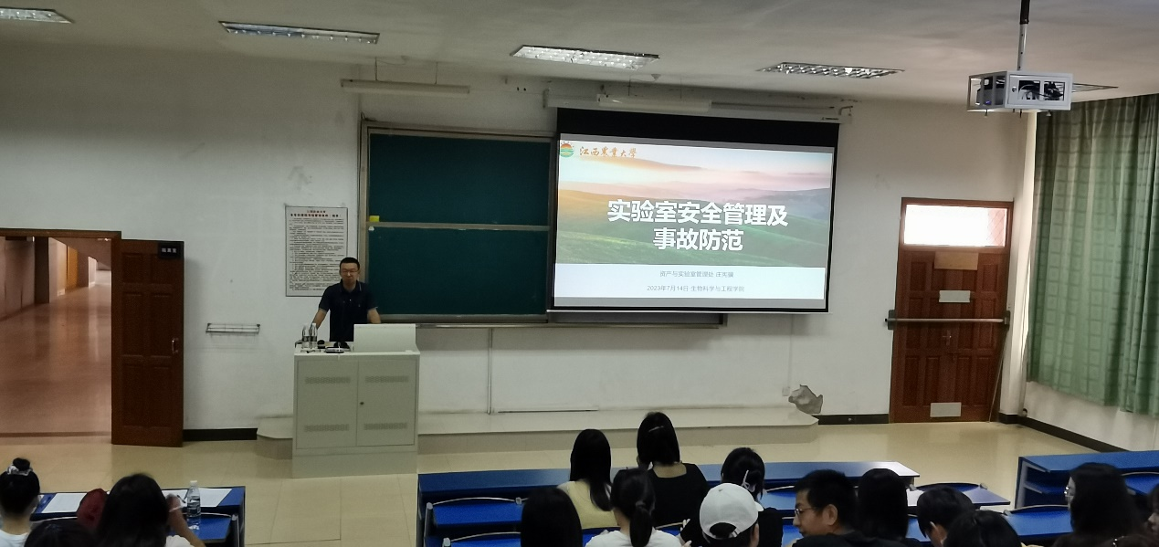 为提高我院师生实验室安全意识和专业素养,增强应对实验室安全风险源的防范能力,保障暑期实验室的安全稳定运行。2023年7月14日,学院邀请校资产与实验室管理处庄宪骥老师为我院暑期留校开展实验人员做实验室安全知识培训讲座,学院分管领导、师生百余人参加本次培训。