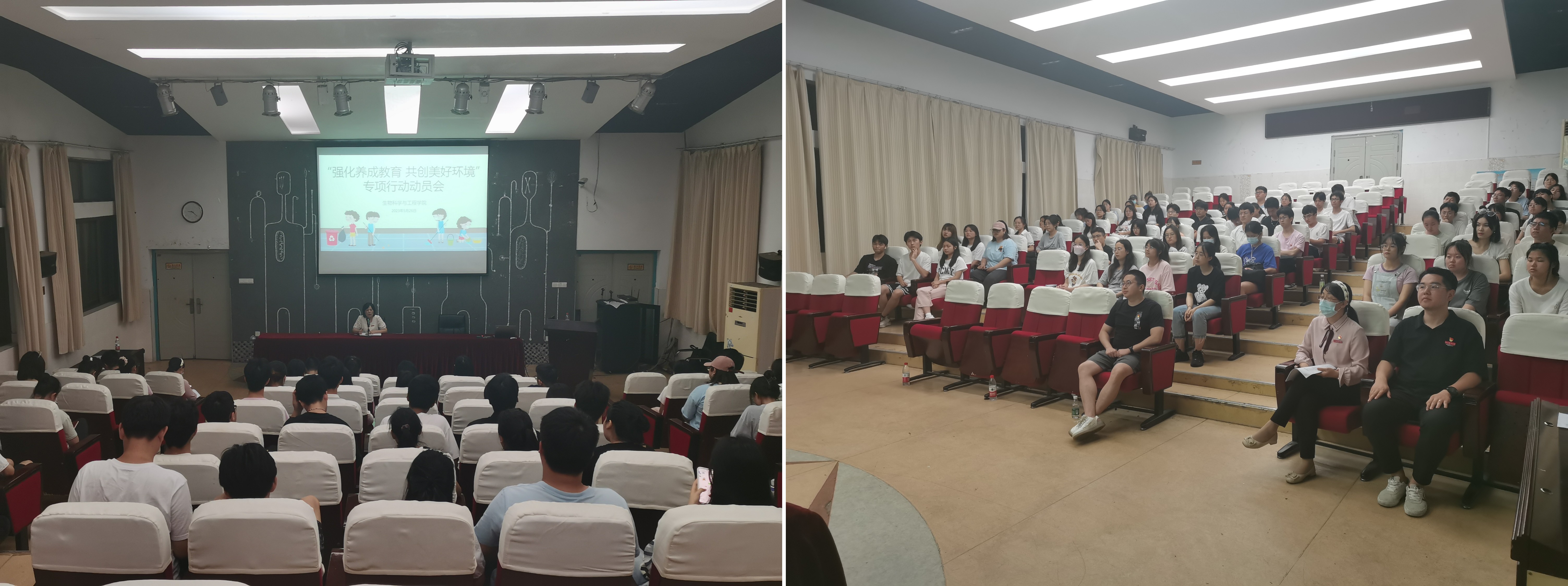 院学生党总支书记范丽琴对学校开展本次专项活动的文件精神进行传达并安排部署。她强调,此次活动是以文明养成教育为契机,树立良好的院风、学风和班风,学生行为习惯的养成是一项艰巨的、长期的树人工程,应当精细严实抓管理,齐心聚力促新风。