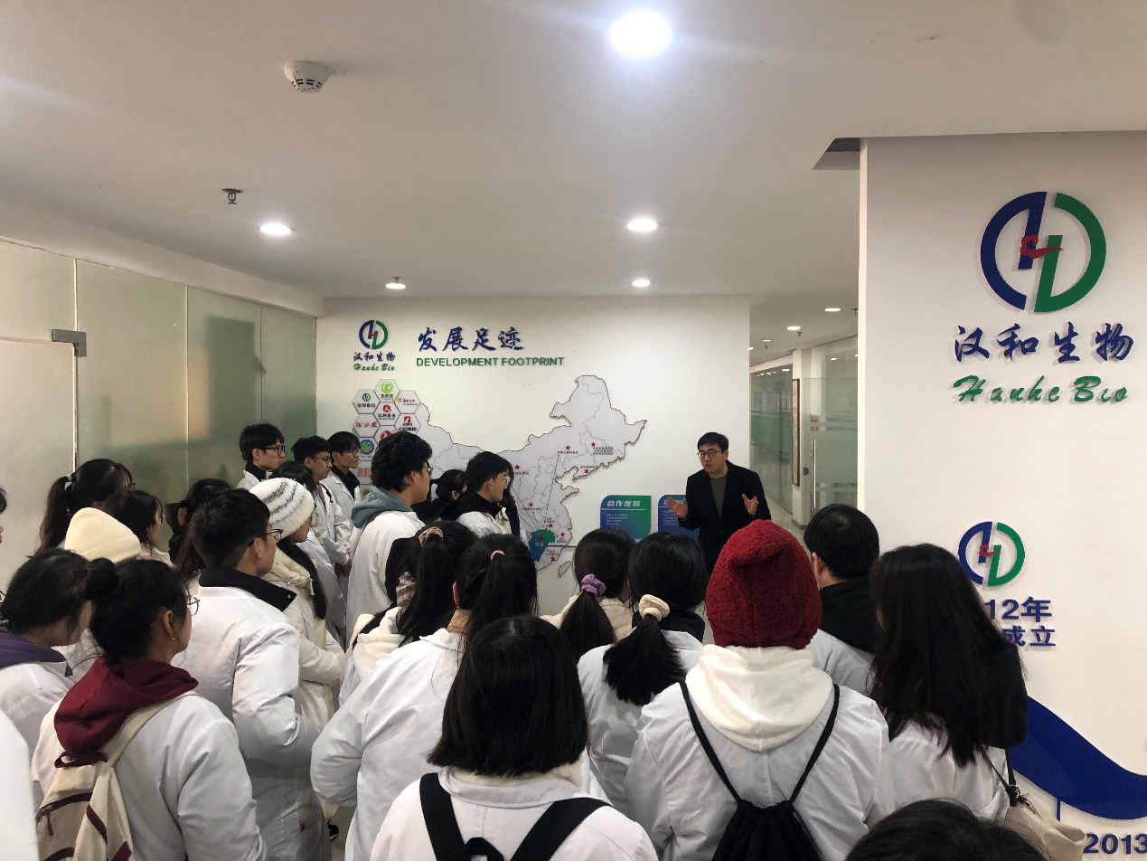 本次实习分为若干环节开展,在公司相关部门负责人的带领下进行了全方位的实习学习。研发部门负责人详细介绍了汉和公司发展历程和业务范围,师生参观了药品储藏室、药物分析检测平台和资料室;技术部门负责人详细讲解了药品从剂型改良、配方调整、质量控制到申报审批等流程;质检部门负责人向同学们介绍了相关药品检测使用的常规仪器、使用方法及其相关标准。
