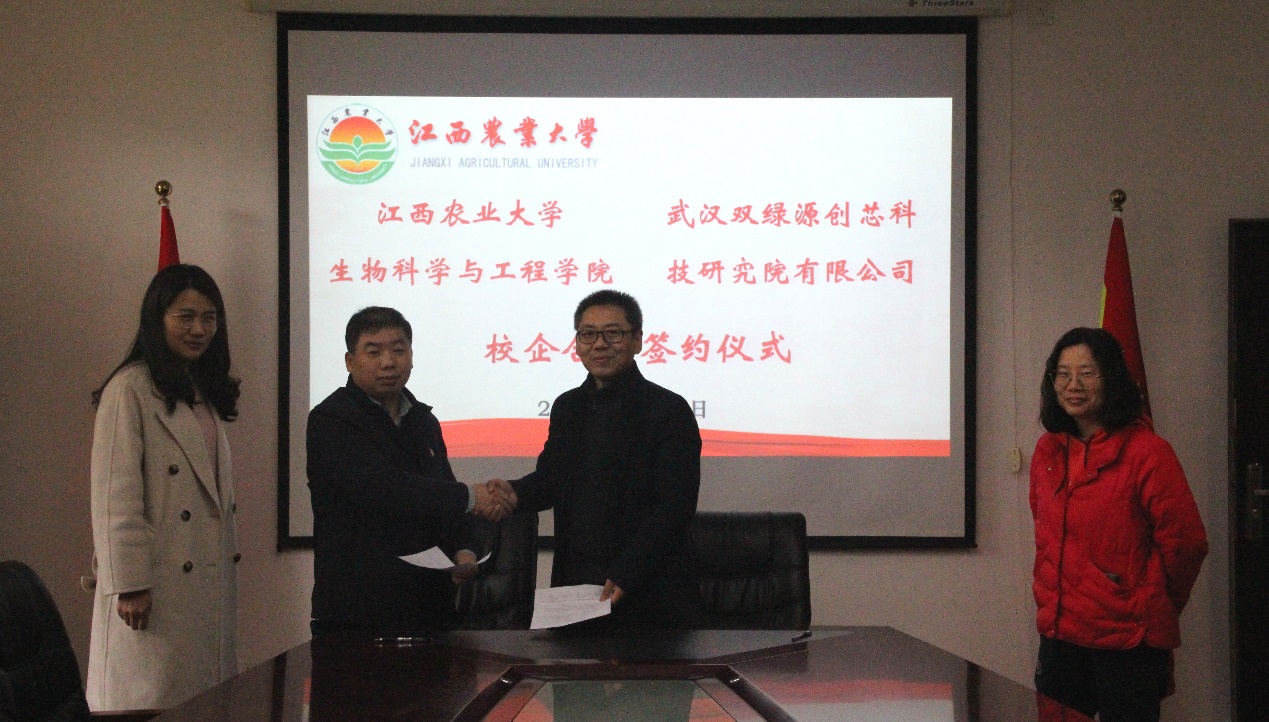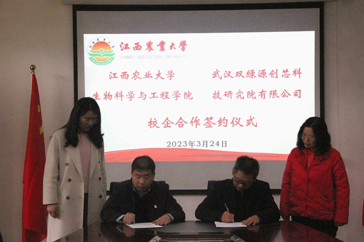 为推进校外实习实训基地建设,夯实生物技术专业实践教育,3月24日,学院与武汉双绿源创芯科技研究院有限公司(以下简称双绿源)签订合作协议,共建校外实习实训教学基地。副院长张庆华、生物技术系主任刘建萍、双绿源公司总经理邱树青、研发及市场总监张翠翠参加协议签订仪式。