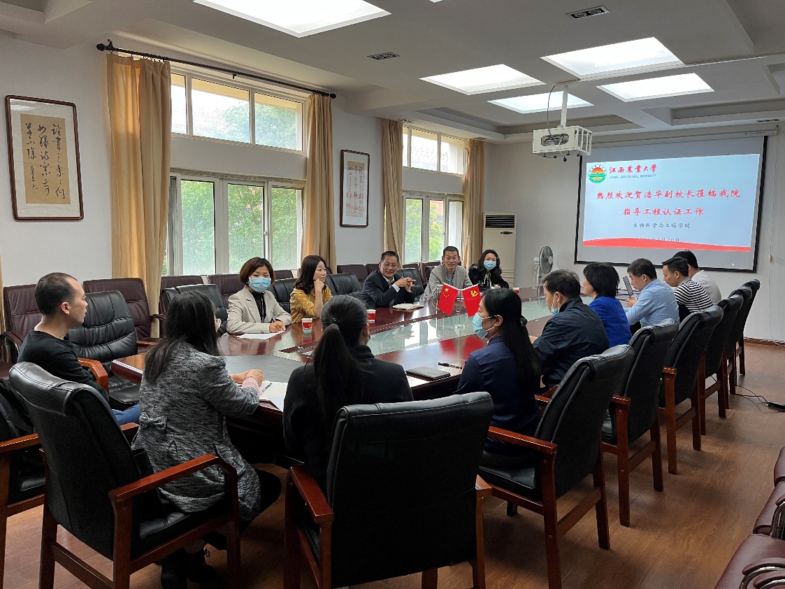 5月20日上午,副校长贺浩华在教学质量监督与评估中心副主任柳军、教学质量科科长熊剑芬、教学评估科副科长胡莎以及评估中心张称心老师等的陪同下莅临我院指导工程认证工作。生工院领导班子成员、学院工程认证小组成员参加了座谈会。