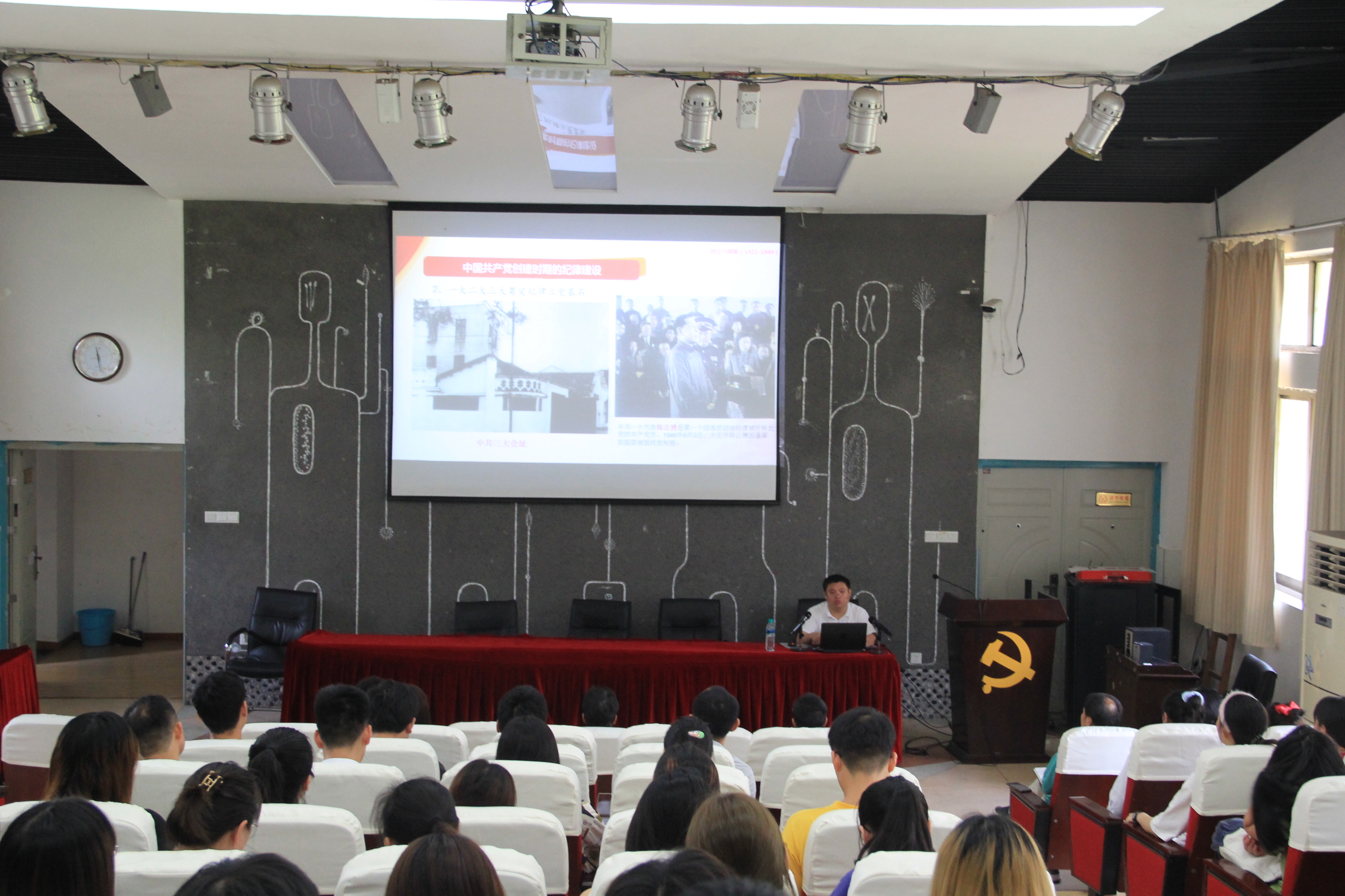 6月15日下午,应学院党委邀请,南昌市纪委监委宣传部副部长苏镜荣、派驻市委办公室纪检组副组长曾萍等优秀校友回母院访问。苏镜荣以“纪律建设永远在路上—中国共产党纪律建设历史学习体会”为题,作了党史学习教育辅导报告。院党委书记廖明祥同志主持报告会,全院师生党员、预备党员和发展对象等近百人聆听了报告。