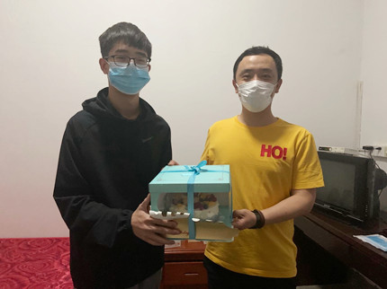 5月25日晚,学工处刘康老师、卜琰婷老师,学院学生党支部书记任青达和学工办老师一起看望接受隔离观察的学生,向他们表达学院的关心和问候。当天恰好是生工1802班李鸿儒同学的生日,学工办特意为其送上了生日蛋糕和诚挚祝福。看到隔离房间光线比较昏暗,看书学习有所不便时,学工办又为其送上台灯,帮助学生解决实际困难。因学校疫情防控要求,班主任翟志军老师、学工办冷飞翔、胡莎老师、任青达老师及部分学生干部,为隔离点大学生和校医院观察期大学生送上每日饮食和必要生活用品,并叮嘱同学们要保持积极乐观的心态,在学习、生活上有困难要及时向老师和学院提出来,学院定会尽力帮助解决。