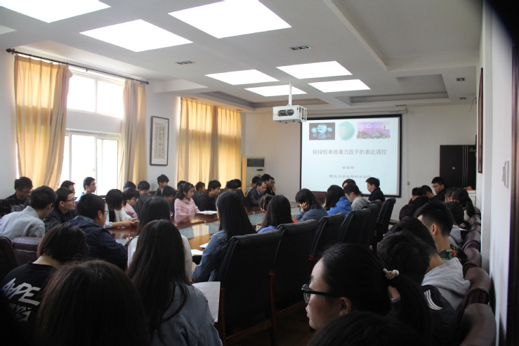 报告会上,梁海华教授就铜绿假单胞菌毒力因子合成途径、细胞间群体感应因子及调控蛋白作用机制等方面进行了详细阐述。梁教授精彩的报告和严谨的治学态度赢得了现场阵阵掌声。
