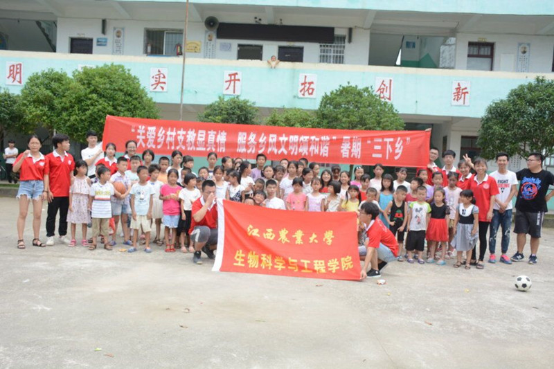生工学院2018年暑期社会社会实践走进新建区溪霞镇,顺利地开展了为期一周的内容详实的活动。实践活动的主要内容以支教小学为主线,包括强化小学生英文水平,书法练习,歌舞学习,课外标本制作,素质拓展,体育。涉及面广,给广大小学生营造了一种积极活泼向上的暑期氛围。