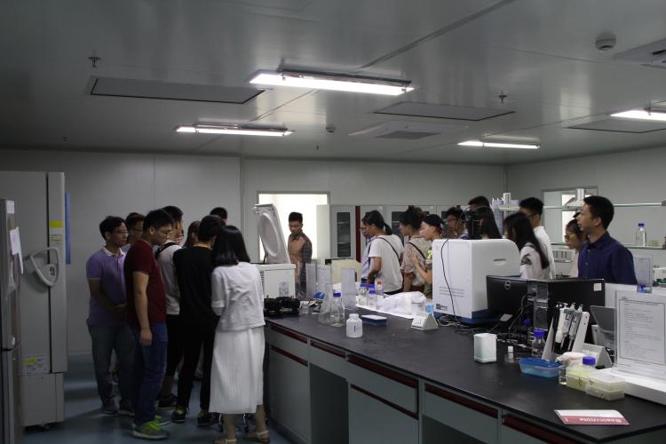 本次实习,学院师生实地考察了三家科技型公司研发实验室和生产流程,杭州祥音生物科技有限公司相关部门负责人向到访师生详细介绍了基因组测序、转录组测序、医学检测等工作流程;杭州和合医学检验所相关部门负责人向到访师生详细介绍了质谱检测、维生素A/E检测及基因筛查等工作流程;杭州唯铂莱生物科技有限公司向到访师生详细介绍了卤化试剂盒生产、酶制剂生产、天然蓝色素生产、医药中间体生物催化等工作流程。很多同学希望在这三家公司继续进行毕业实习,相关事宜学院与三家公司将进一步商谈。(生工院)