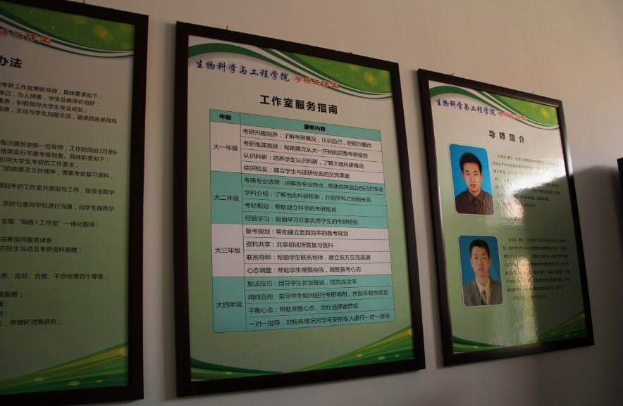 我院从2015年12月开始筹备考研工作室的建设,历经导师遴选、硬件采购、科学管理、意见征集、会议论证等环节,于2016年1月初步建成,工作室由两位在学生中认可度较高的教科研人员担任导师。工作室的主要功能有:一对一解决考生实际问题、收集建立考研资源库、研究考研政策、与外院校建立联系、研发指导性资料、建立我校考研智库等。