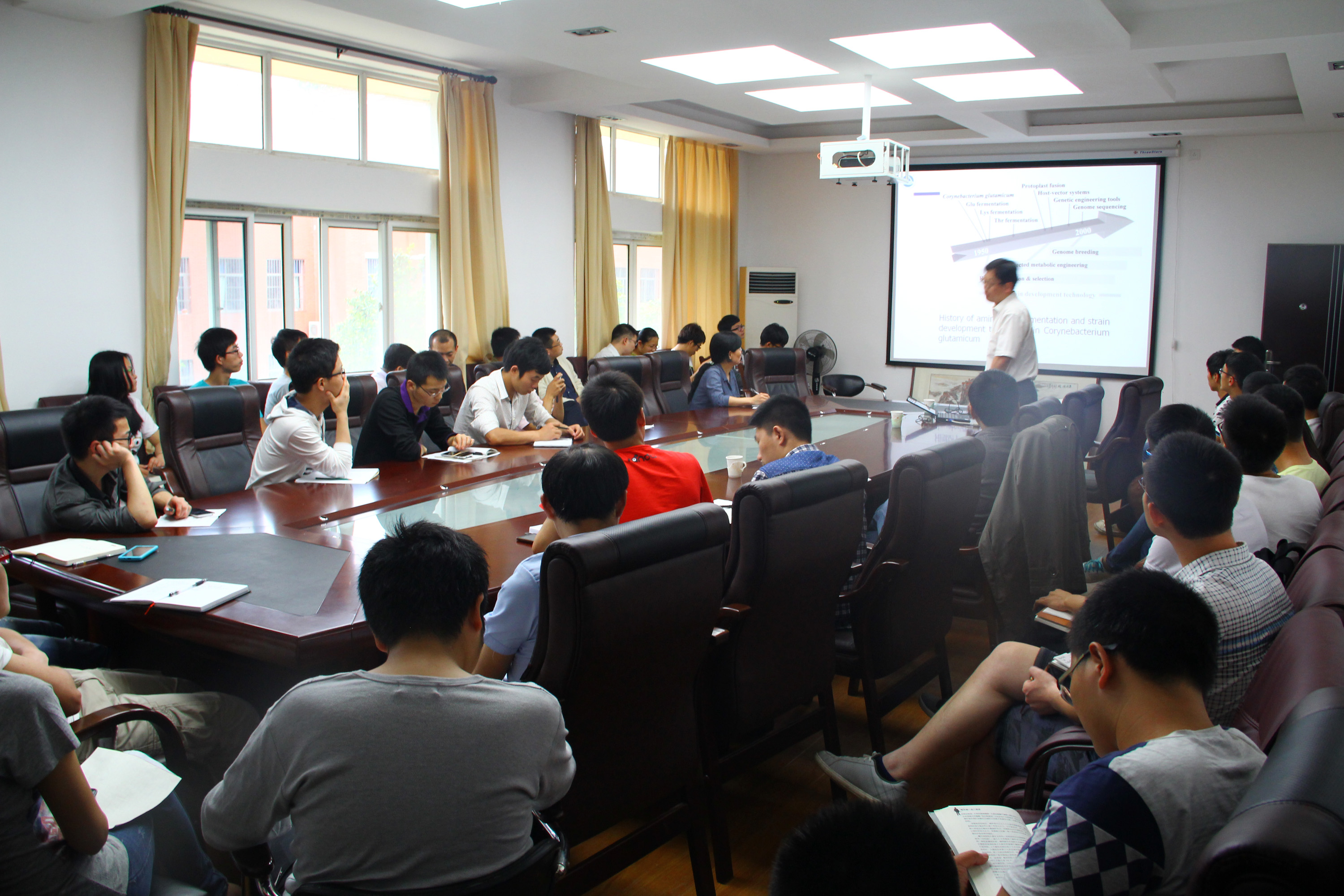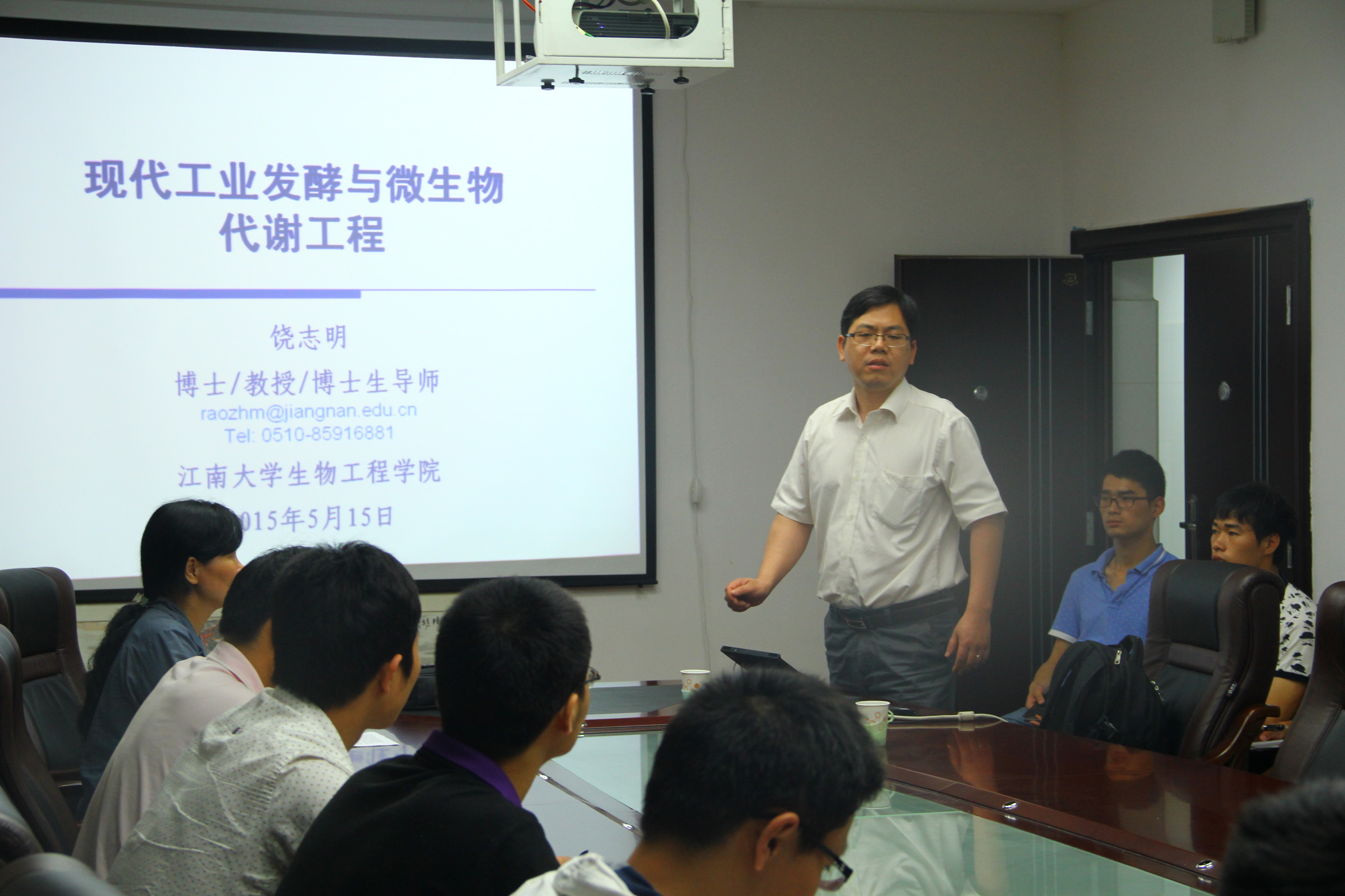 为迎接我校建校110周年庆典,5月15日下午,应校长黄路生院士和生工院的邀请,我校校友、江南大学博士生导师、食品科学与技术国家重点实验室副主任饶志明教授在我院二楼会议室作了题为《现代工业发酵与微生物代谢工程》的学术报告,报告中饶教授着重介绍了现代工业发酵与微生物代谢工程的发展趋势、中国发酵工业取得的成绩、发酵工程的关键技术问题及解决方案、发酵过程优化及控制、发酵工程系统集成及关键技术、江苏省现代工业发酵协同创新中心,以及其实验室的多项研究成果等多方面精彩的内容。其中,饶教授还特别以国际最前沿研究成果,及其所在研究团队的成功研究案例,生动而详细地阐述了微生物正向及逆向代谢工程的关键技术环节,以及对现代工业发酵的重要推动作用。报告中我校师生与饶教授进行了积极而富有成效的互动交流。(生工院)