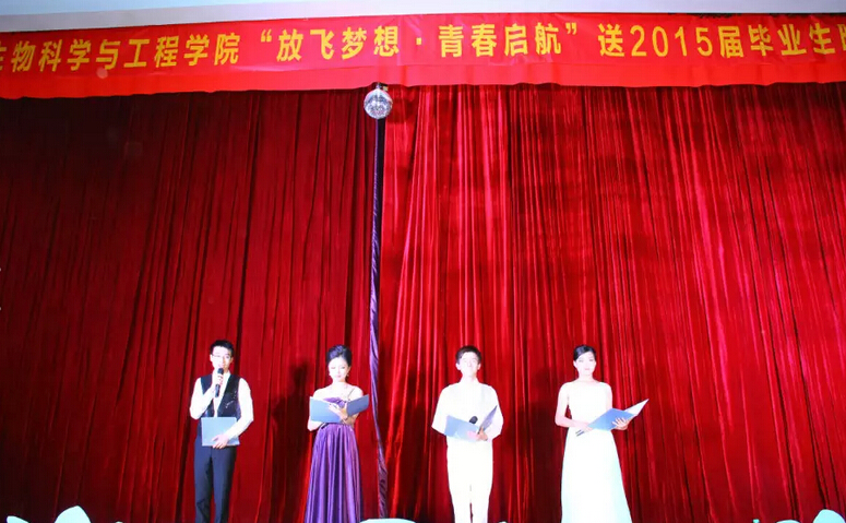 2015年5月16日晚七点,由我院团委、学生会举办的“放飞梦想,青春启航”送2015届毕业生晚会在校大礼堂隆重开场。我院院长吴晓玉,党委副书记罗志华,副院长刘卫东、李昆太及学院老师与我院千余名学生共同观看本次晚会。