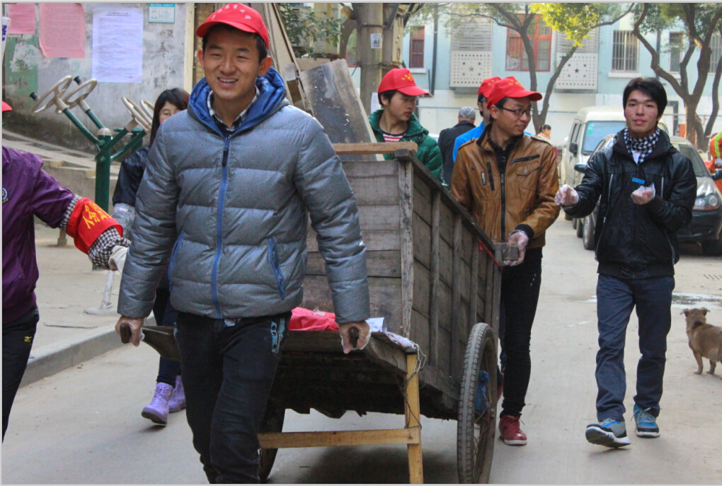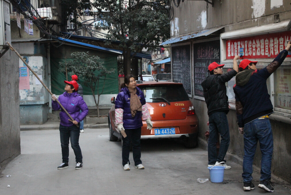 12月13日清晨,学生党员胸前佩戴校徽,头戴青年志愿者红帽,乘车前往叠山路,帮助社区工作人员清理各栋居民楼前小广告、打扫公共过道、清理历史遗留垃圾、打扫社区雨棚等。党员们的辛勤劳动得到了社区工作人员和居民的高度肯定。