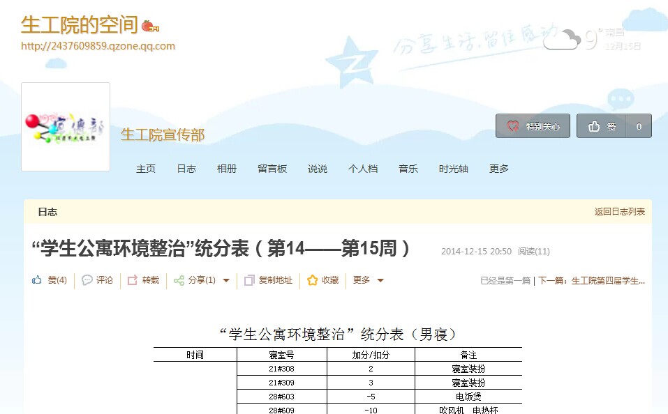 四、 寝室评分周报制