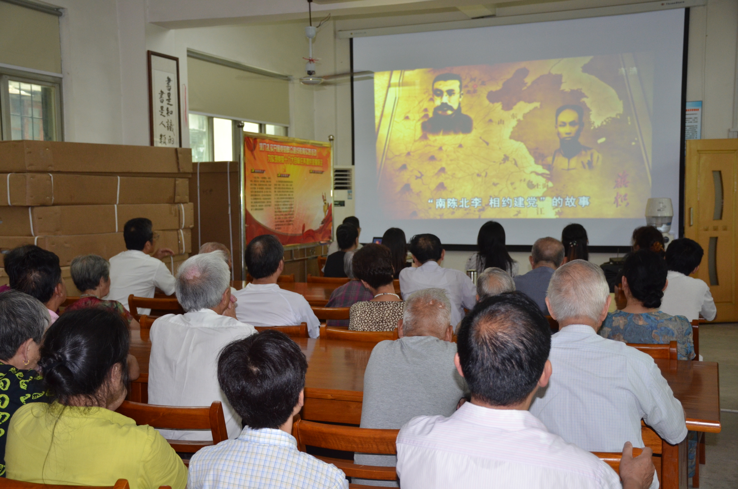 活动分别由“给老党员播放经典视频”、“老党员讲述那些年的革命历程”、“歌唱党的赞歌”、“听红歌,猜歌名,赢奖品”、“重温入党誓词”等多个环节组成。