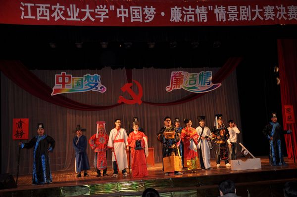 12月17号晚由校纪委和校团委联合举办的“中国梦·廉洁情”情景剧大赛决赛在校大礼堂圆满落幕。本次大赛共吸引了来自14个学院29支参赛队伍,最后共6支代表队进入决赛。