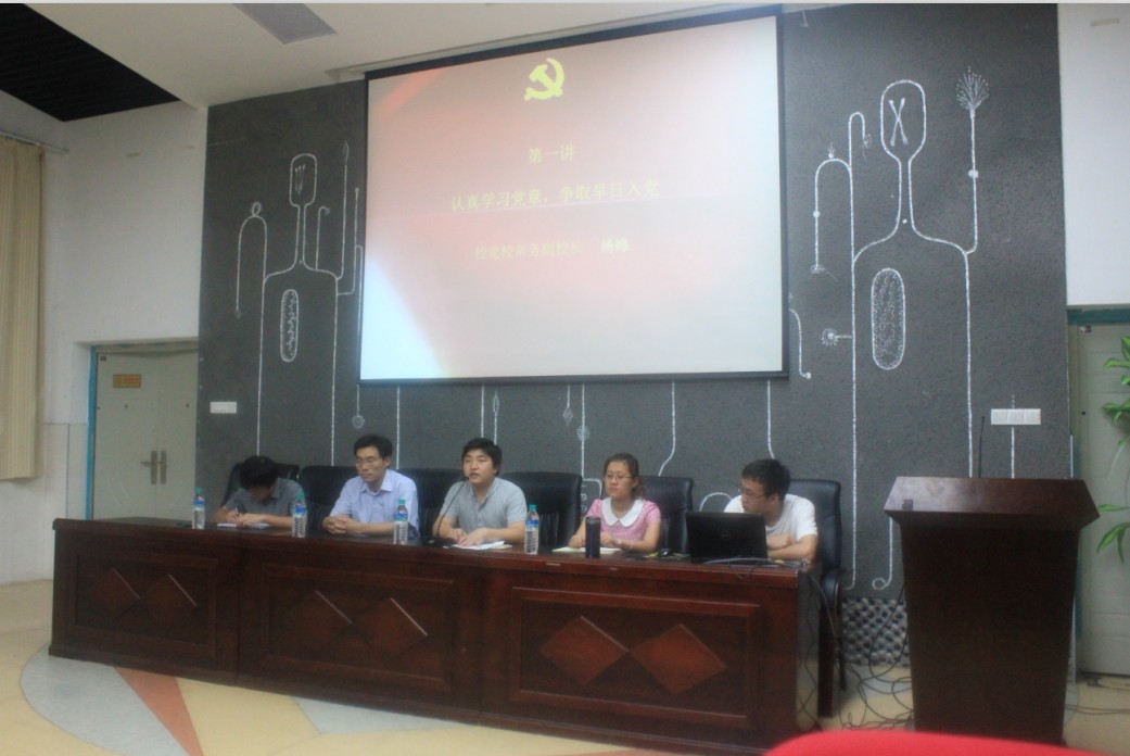 仪式结束后,杨校长以“认真学习党章,争取早日入党”为题分别从党章的地位及作用、党章的内容、党章修改的意义、十八大党章新内容和学习党章的方法四大板块为学员们做了一场精彩的报告。本期培训班共有三讲,校党委组织部副部长徐峰、校党委宣传部副部长胡永升也将为学员授课。