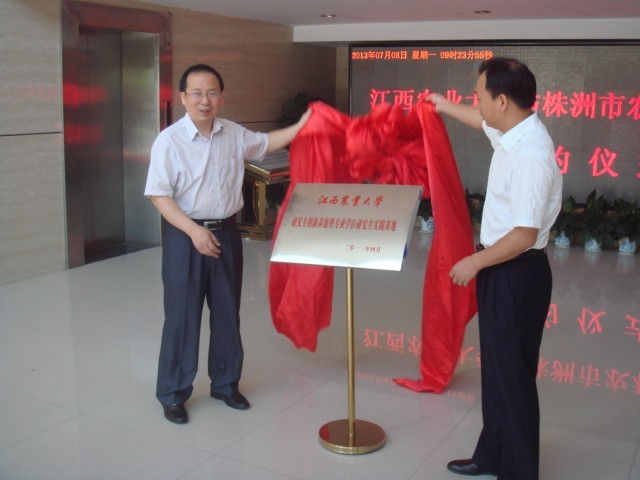 2013年7月7-8日,校研究生处处长曾志将与研究生处副处长彭齐东、生工院副院长霍光华、生工院副教授胡颂平等一行,赴湖南省株洲市农业科学研究所举行了我院第二个校级研究生创新基地暨专业学位研究生实践基地的挂牌签约活动。曾志将一行受到株洲市农科所主要党政领导漆本蛟、吴龙云、罗志勇等的热情接待,并邀请株洲市电视台对活动进行了报道。株洲市农业科学研究所是湖南省前三名的农业科研院所,在杂交水稻培育、红葡萄酒酿制、花卉组织培养、蔬菜水果开发、科技成果转化等方面具有国内领先优势,适合我院细胞生物学、生物工程等专业的研究生进行创新实践活动。我院与株洲市农科所有着广泛的合作空间。曾处长表示如果基地运行顺利,成果颇丰的话今后还可以升格为省级研究生实践基地。(生工院胡颂平供稿)
