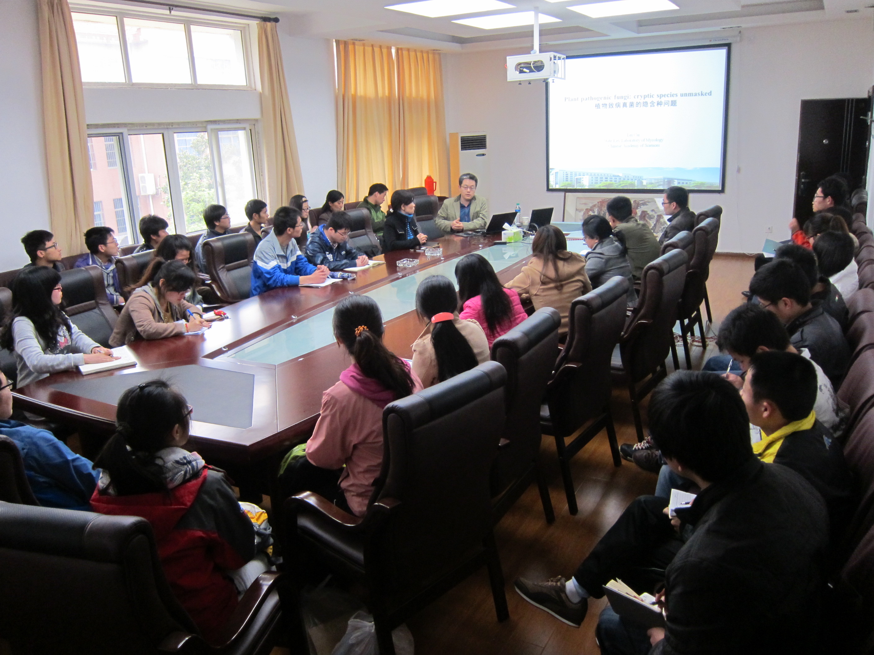 4月22日下午,中科院微生物研究所真菌学国家重点实验室研究员蔡磊博士,应生工院吴晓玉院长之邀,为生工院教师和研究生作题为《植物病原真菌中的隐含种问题》学术报告。