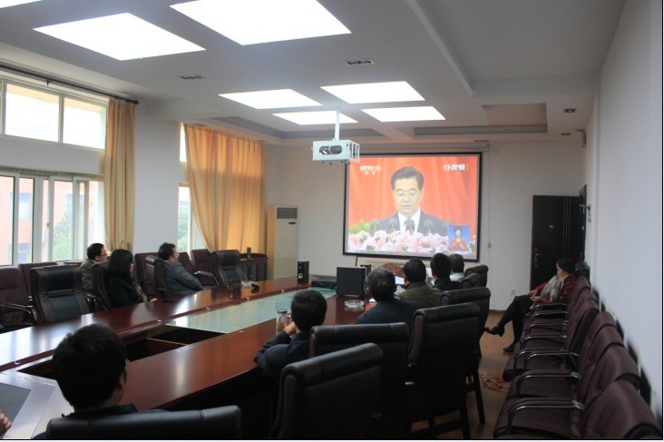 11月8日上午9时整,在生工楼二楼会议室和一楼报告厅,学院师生分坐二个会场,通过网络电视收看收听和学习胡锦涛总书记代表十七届中央委员会向大会作题为《坚定不移沿着中国特色社会主义道路前进为全面建成小康社会而奋斗》的报告。