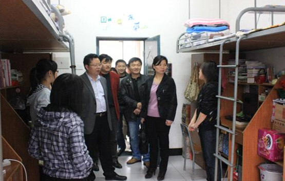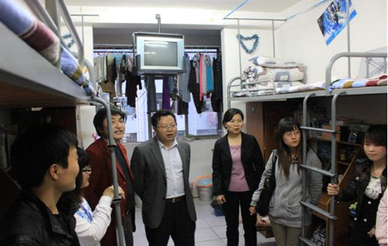 2012年4月13日晚6点,我院党委书记李剑富、院长吴晓玉、党委副书记罗志华、副院长刘卫东、团委书记江冰、团委老师李春晓、团委辅导员刘柳7位学院领导老师在院学生会主席游正权等学生干部的陪同下走进了我院女生宿舍北区10栋,深入学生的生活环境了解学生的学习和生活动态。