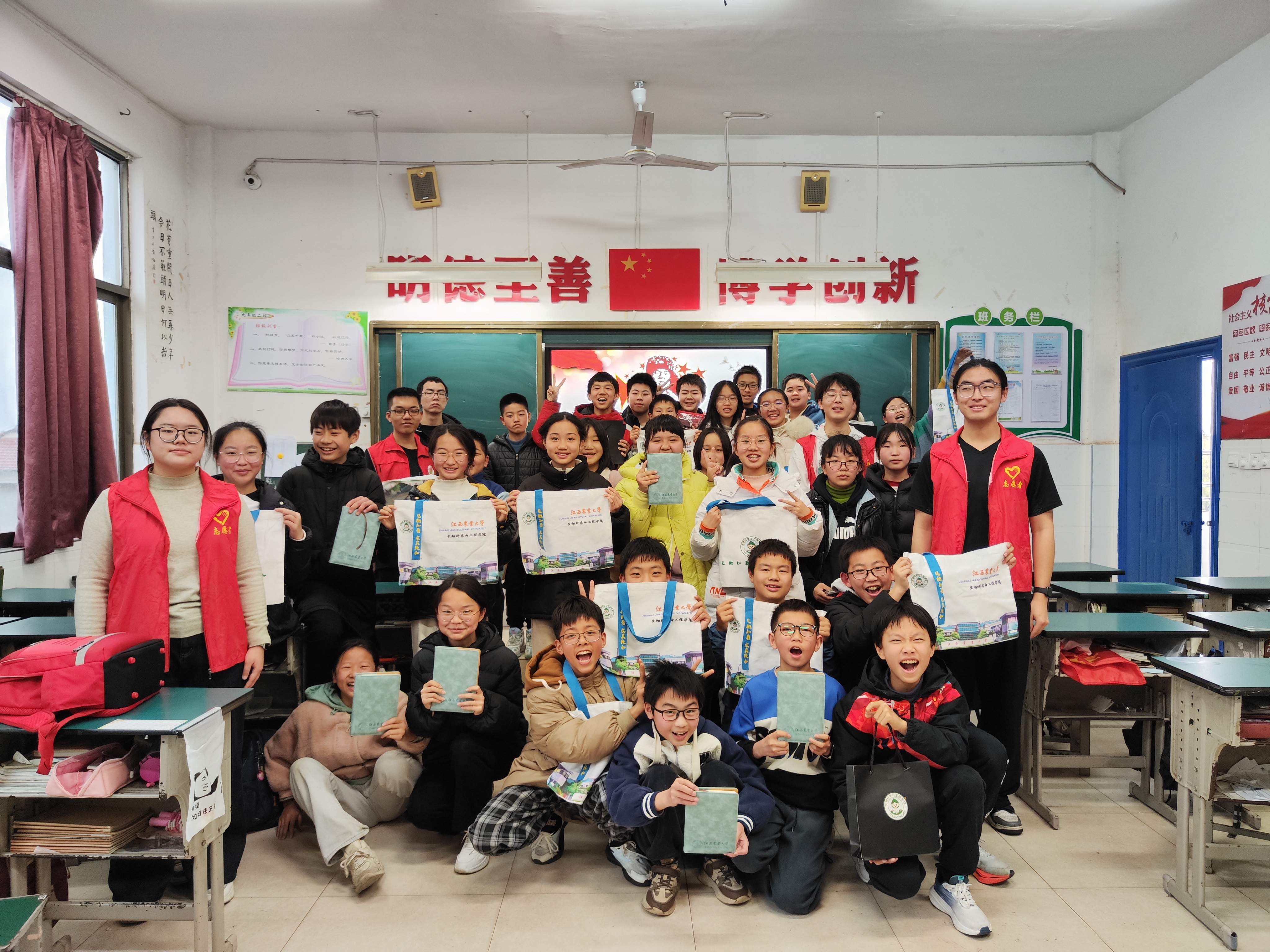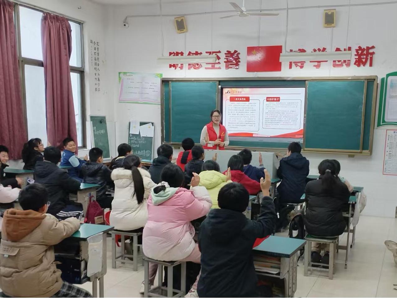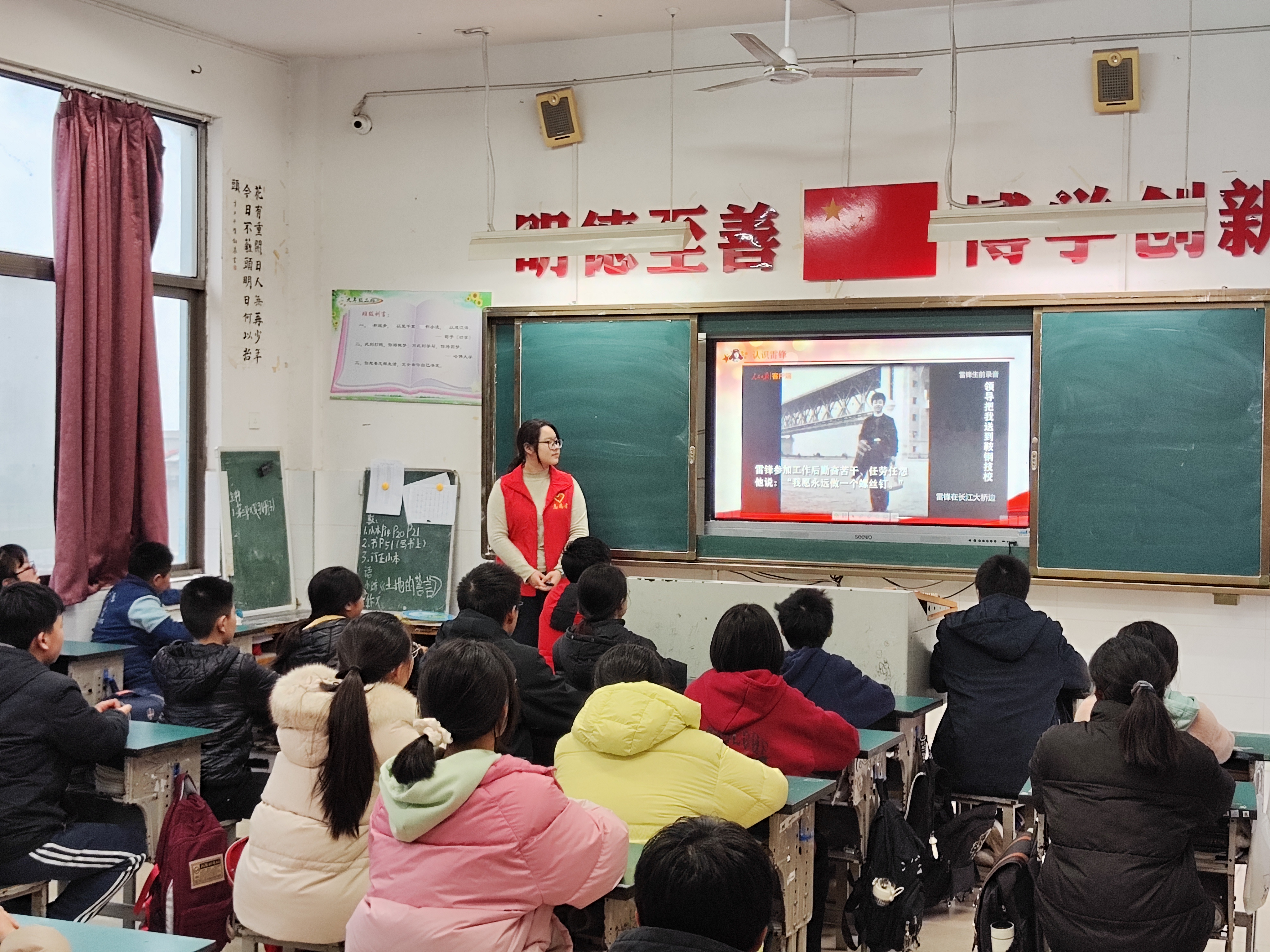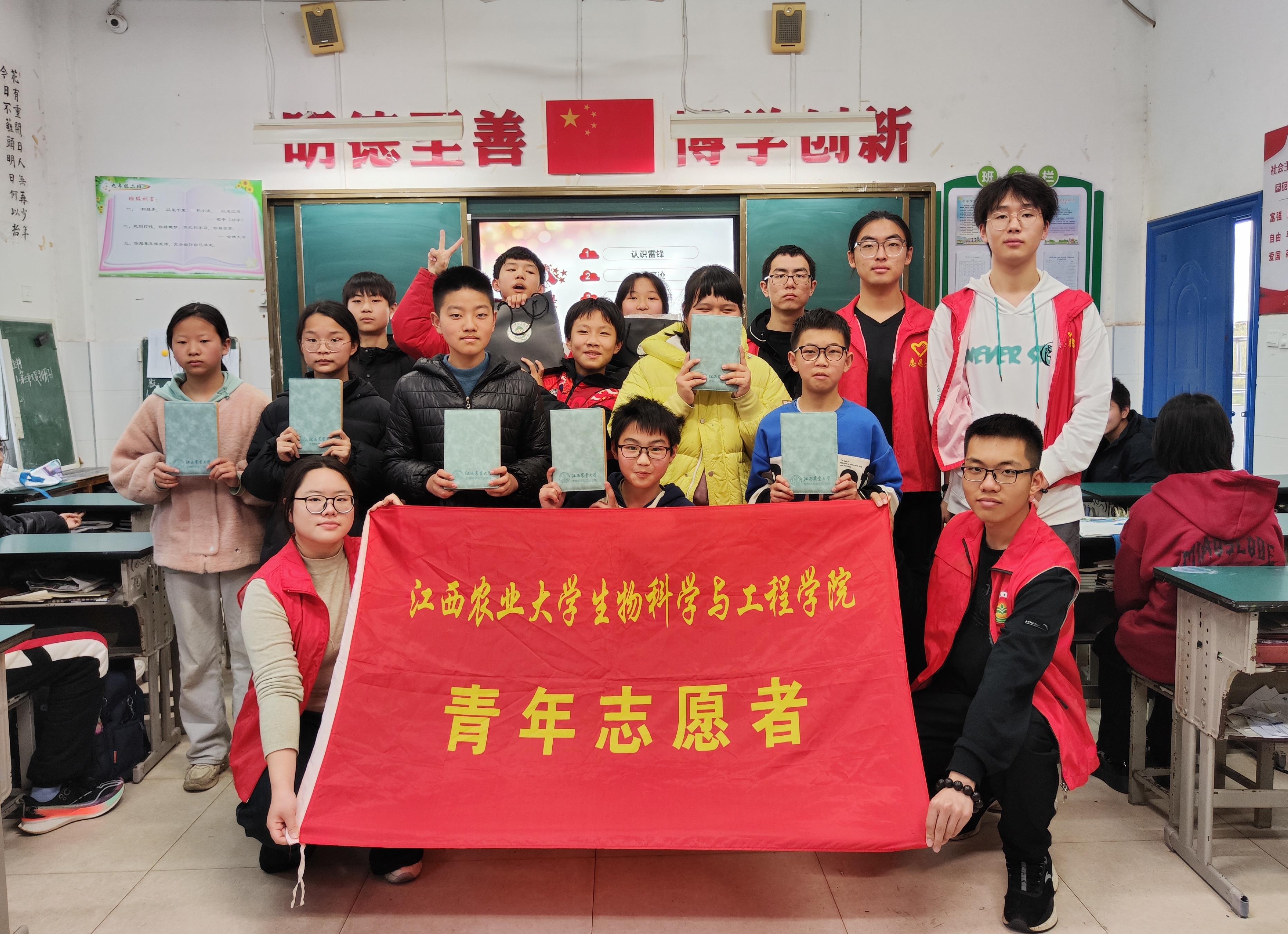 弘扬雷锋精神,点亮青春灯塔。在江西农大附属中学的课堂上,一场以“学雷锋”主题宣讲活动热烈展开。志愿者们深入浅出的讲述,不仅重现了雷锋平凡而伟大的一生,更让现场小朋友们深刻感受到他无私奉献、艰苦奋斗、爱岗敬业的精神内涵。宣讲中,志愿者们设置了互动环节,邀请同学们分享心中的“当代雷锋”,同学们踊跃发言,讲述同学间互帮互助、老师无私关怀的温暖瞬间,让“向上向善”的种子在学生心中生根发芽,激励他们以实际行动书写新时代的雷锋日记。